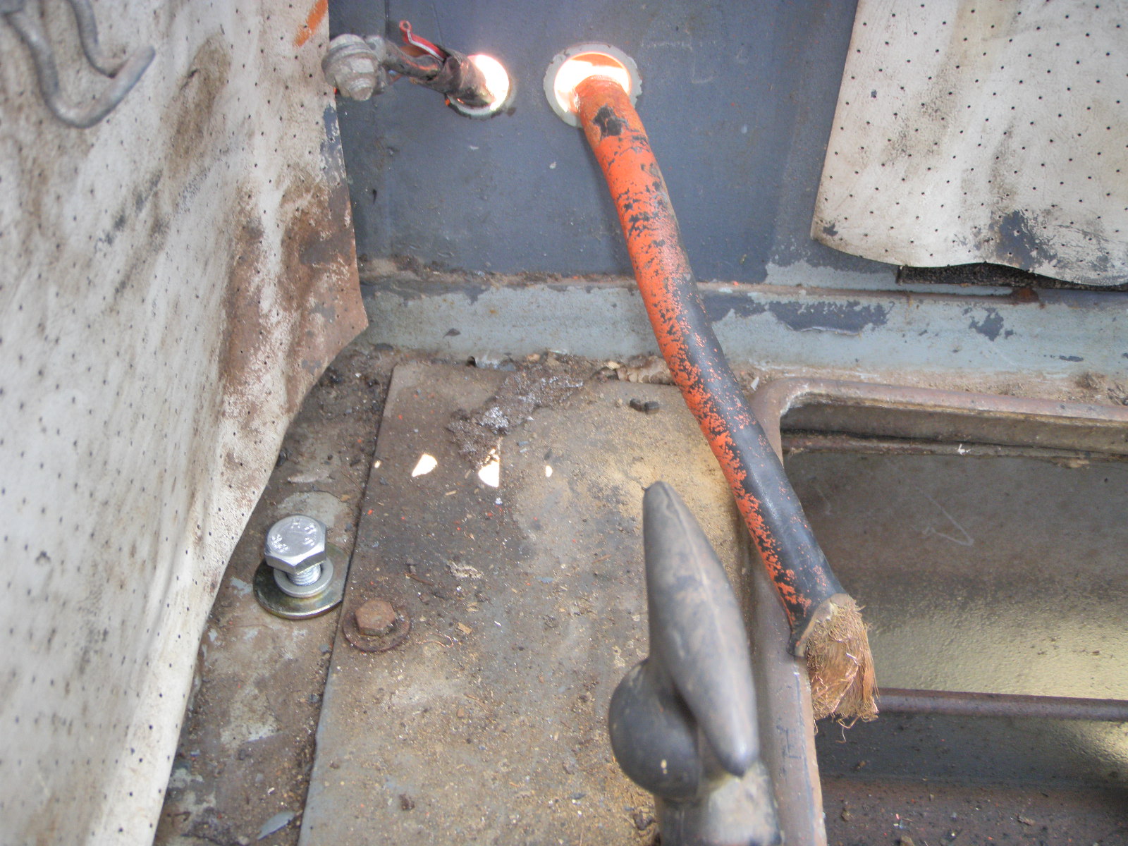 Könnte es sein, daß der Massepunkt an der Stelle liegt, wo ich die Schraube M10 in das vorhandene Gewinde eingedreht habe? siehe Bild.