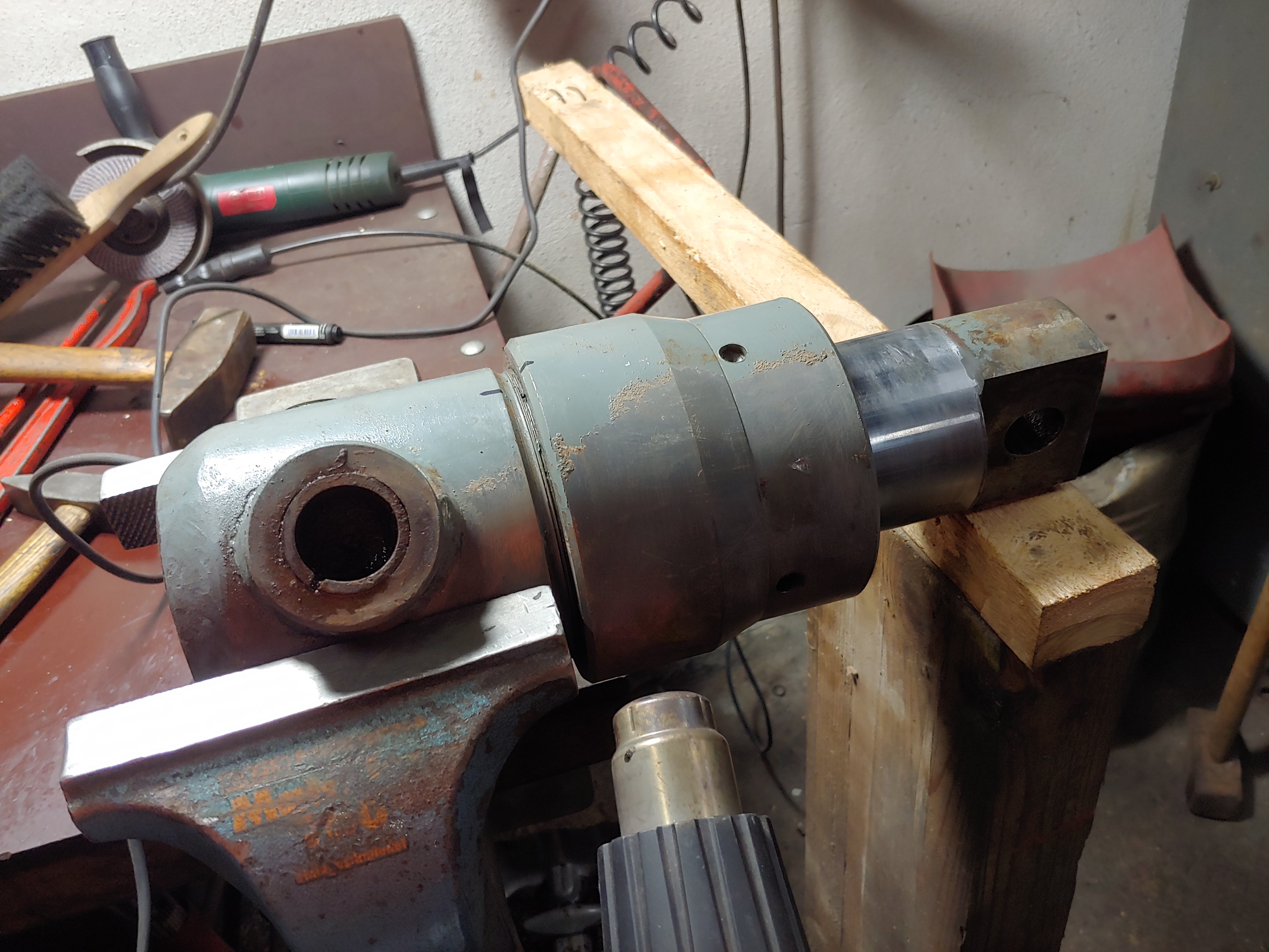 Der Druckluftbehälter wurde komplett neu gemacht. Wir wollten nur mal in den alten reinschauen, war sehr angefressen. Der Arm ist jetzt fertig. Alle Schläuche erneuert, alle Zylinder komplett neu abgedichtet, 5 Zylinderaugen neu, eingelaufene Bolzen erneuert. Zudem wurden alle Keilriemen erneuert. A...