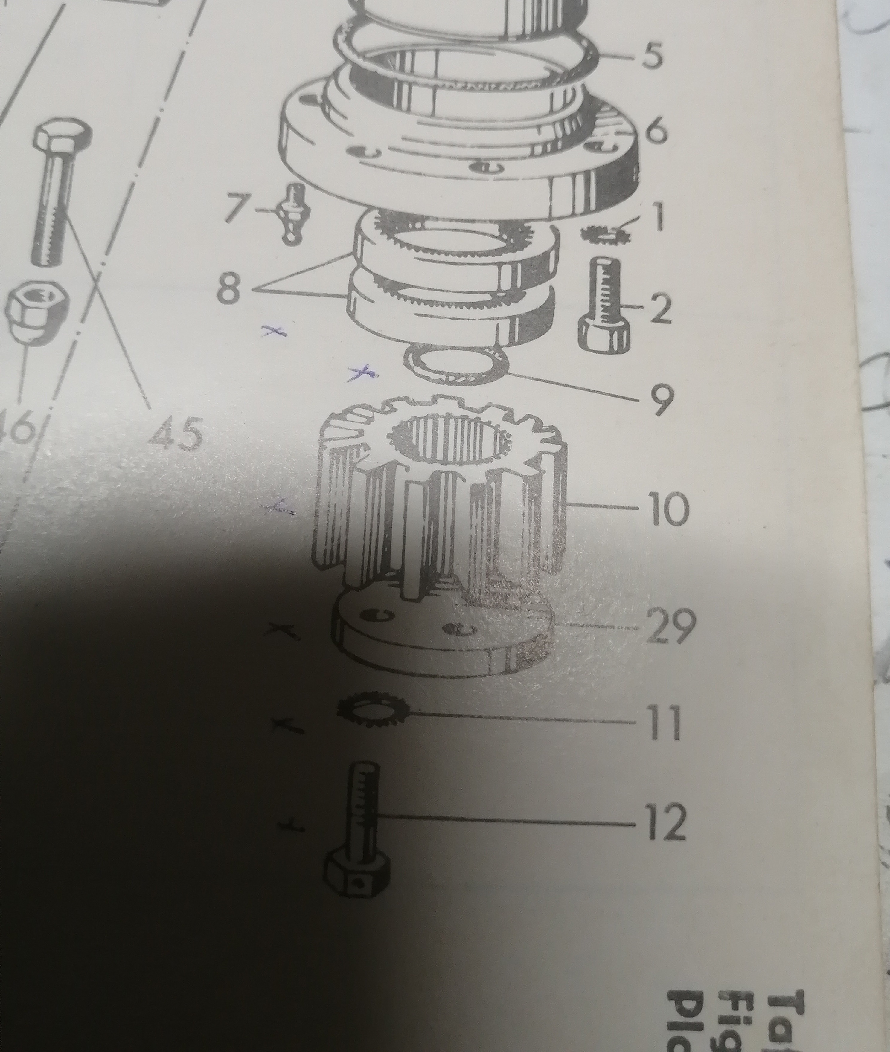wenn das Schwenkgetriebe eingebaut ist, ist das nur möglich wenn du die Pos 41-43 auch entfernst und anschließend das Getriebe verdrehst bis die Schraube an den Zahnkranzzähnen vorbei frei wird. Danach musst du das auslaufende Öl auffangen.