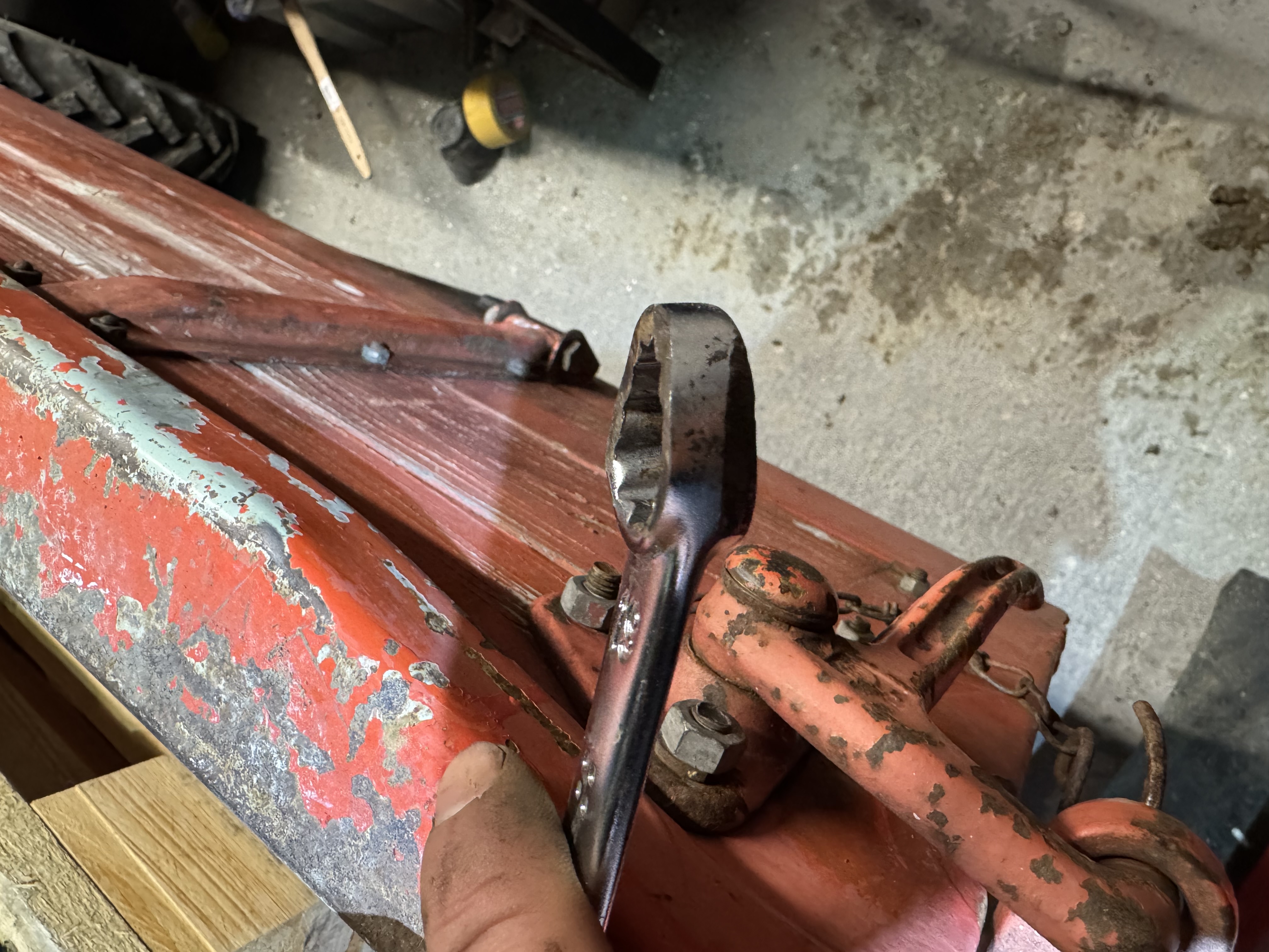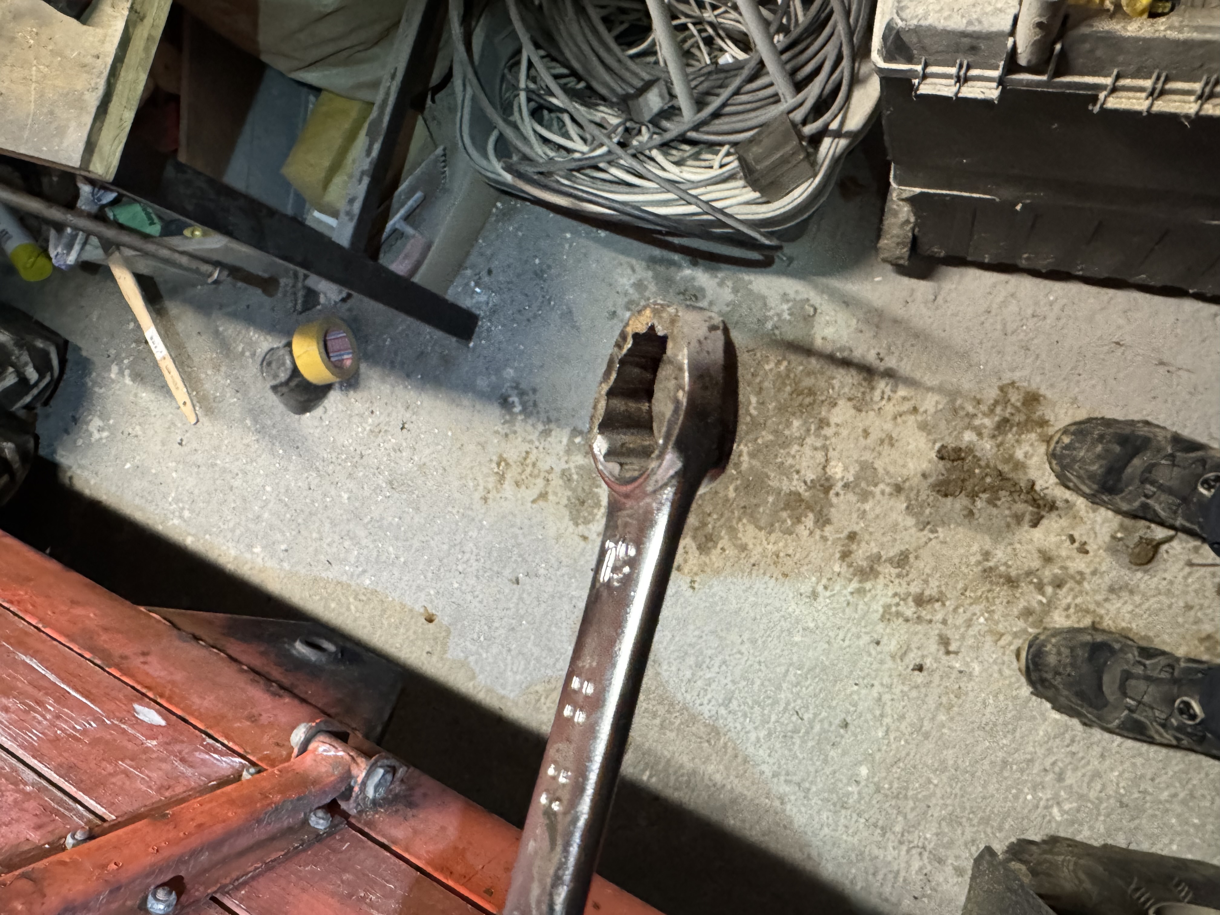 Die Trommel ist ab, ohne Hydraulik, nur mit Gewindestangen :D