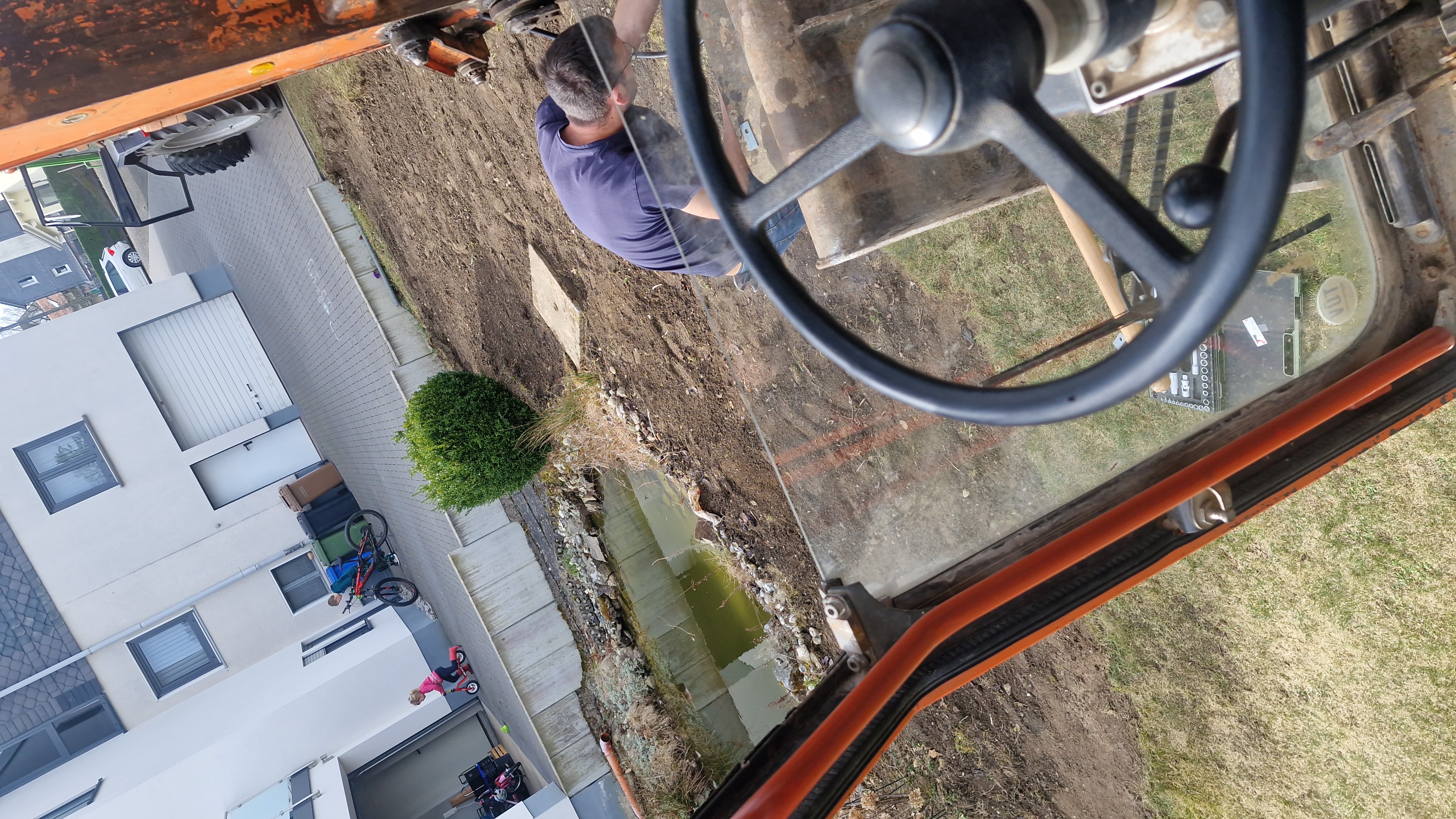 Angefangen hat es mit der Freilegung eines zugewucherten Gartenteiches, dann ging es weiter zu einer Ausschachtung für eine Klettergerüst mit Schaukel. Von da aus wurde eine Baugrube für eine Garage ausgeschachtet. Weiter ging es zu dem Vorbereiten eines Erdplanums für das Pflastern eines Hofes. Von dort aus wurden zwei Wurzeln von ca. 100 Jahren alten umgestürzten Bäumen gerodet. Anschließend wurden Tiefbauarbeiten für eine Böschungsbefestigung mittels Betonlegos ausgeführt. Anschließend noch eine Fläche begradigt bzw. ausgeschachtet für eine Terrasse. Zwischendurch gab es immer kleine Reparaturen von geplatzten oder porösen Schläuchen. Außerdem wurden der Lenkzylinder und beide Pendelachszylinder abgedichtet. Dann sollte Feierabend für das Jahr sein, doch die Landwirte wollten noch eine kleine Baugrube ausgeschachtet haben, eine Wasserleitung freigelegt und Mist geladen haben. Ende des Jahres haben wir angefangen ca 200 Kubikmeter altes Silo wegzuladen. Zwischenzeitlich gab es einen Satz neue Reifen für die Hinterachse und alle Relais wurden getauscht. Alles in Allem ein mehr als erfolgreiches Jahr mit viel Unterstützung aus dem Forum und durch Daniel - vielen Dank dafür! Und jetzt viel Spaß mit den Eindrücken :D