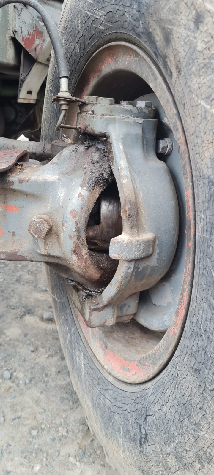 Hierfür habe ich den Bagger komplett aufgebockt, komplett eingelenkt, und die Bremse gelöst, sodass ich die Räder komplett drehen konnte.