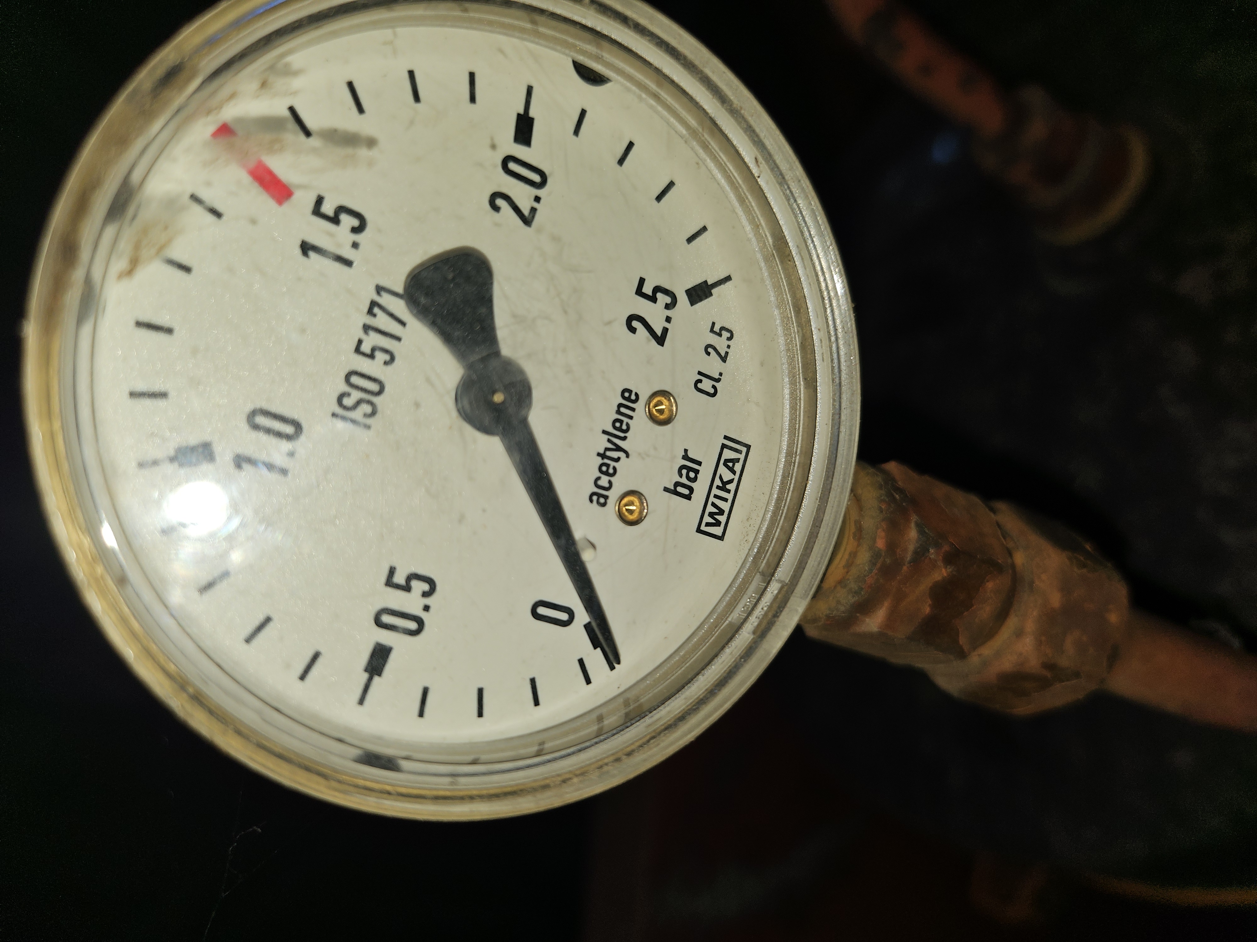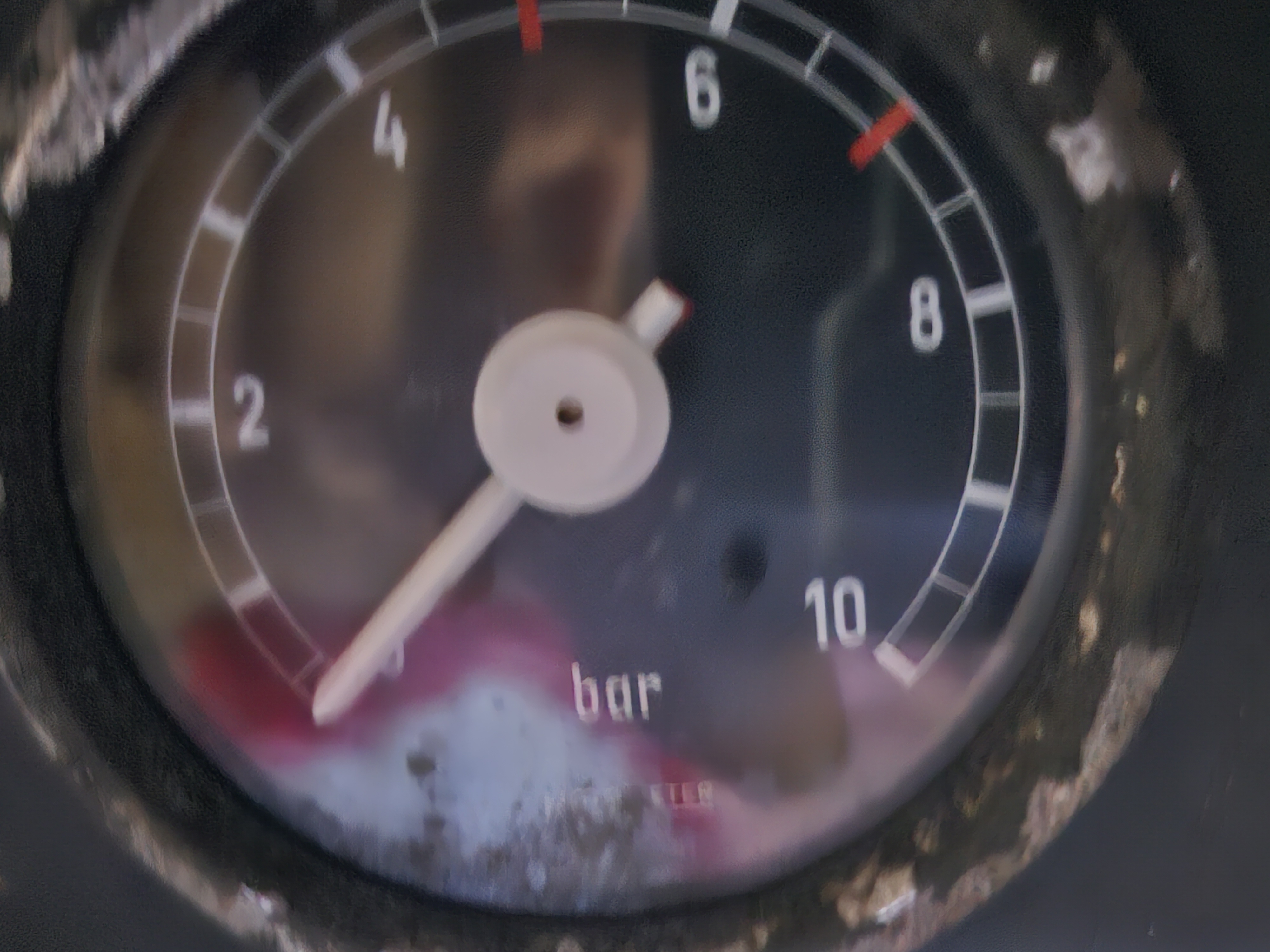 Vorratsdruck (weißer Zeiger) Bremsdruck (roter Zeiger).