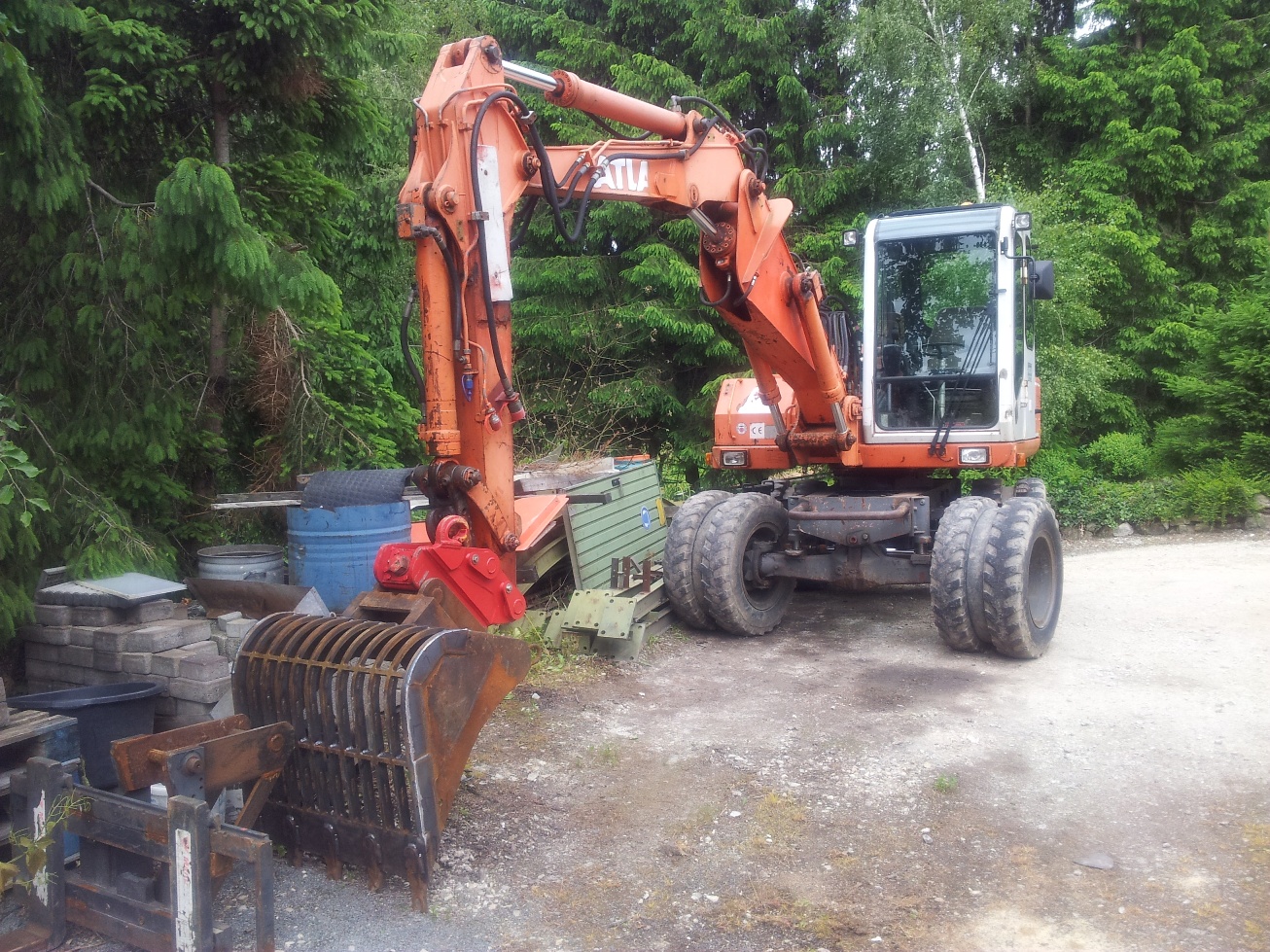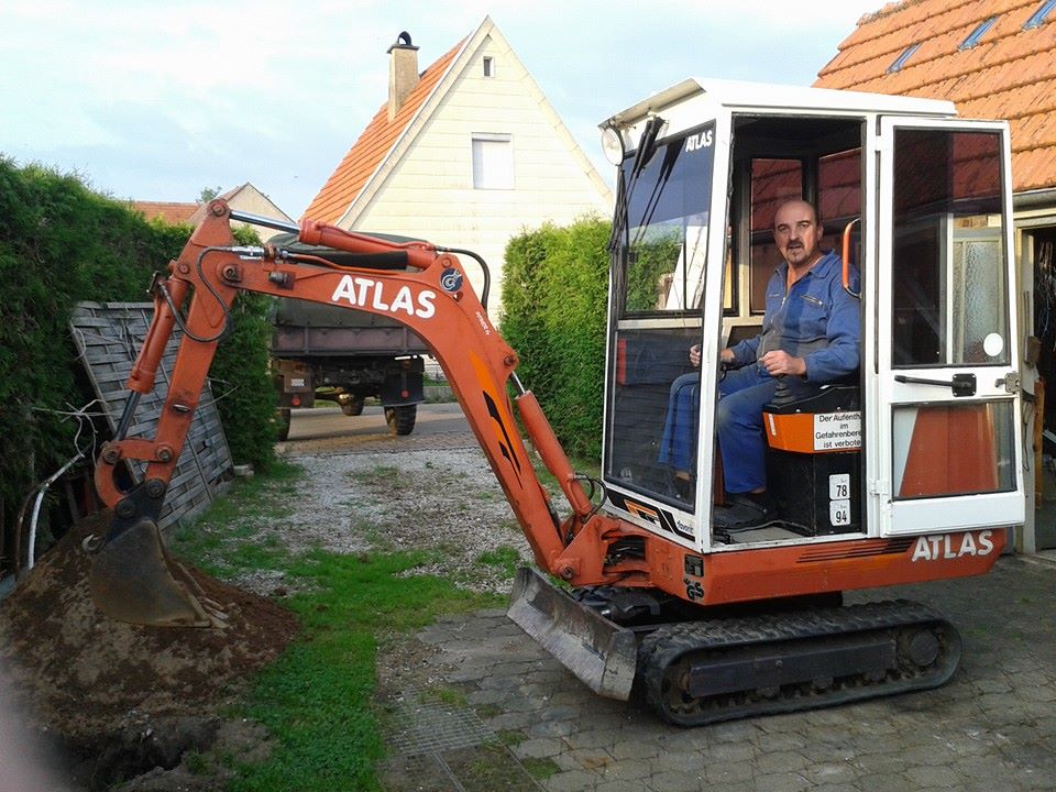 Ich habe mir gerade gemeinsam mit meinem Vater für den landwirtschaftlichen Gebrauch einen eigenen Bagger zugelegt. Es ist ein Atlas 1602D LC - Baujahr 80 - mit 2m hydraulischem Grabenräumer und 90er Laufwerk geworden.