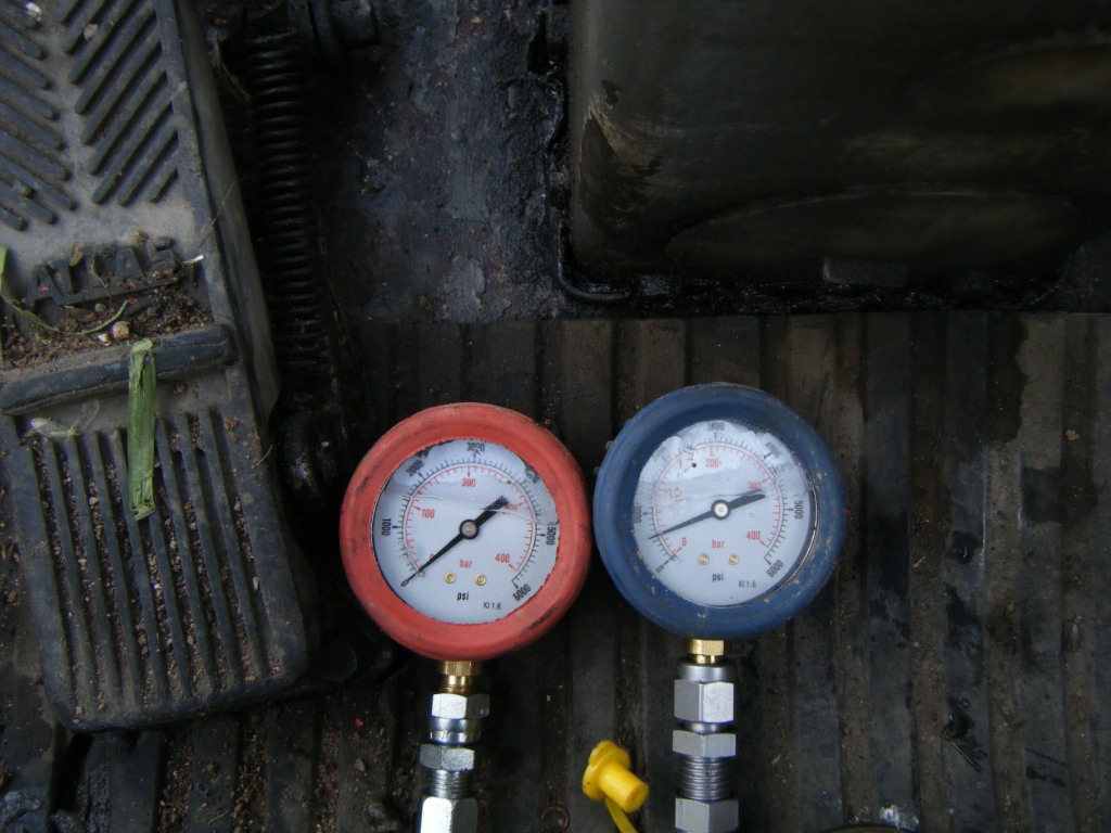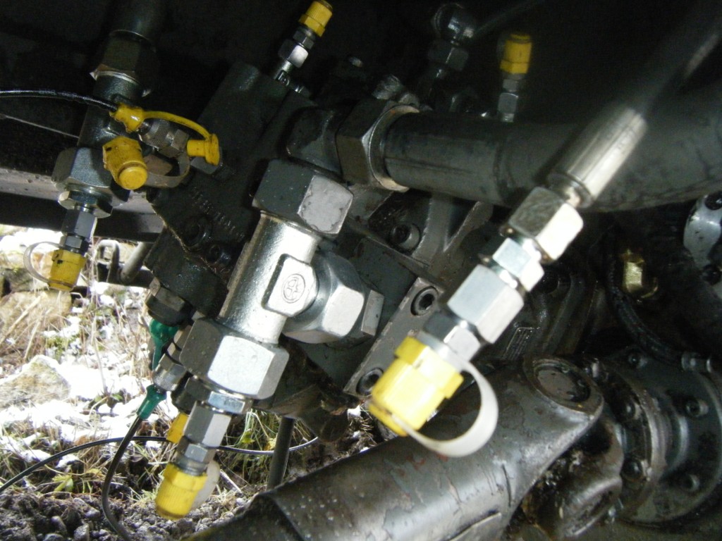 Die beiden 8mm (8S) Hydrauliksteuerleitungen wurden mit einer Druckmessstelle angeschlossen ist.