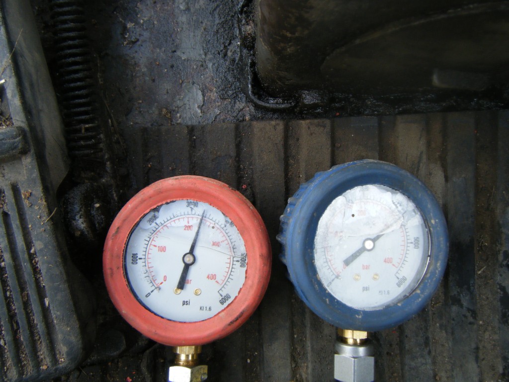 Der blaue Druckmessgerät wurde auf Port D, oben auf dem Steuerkolben verbunden.