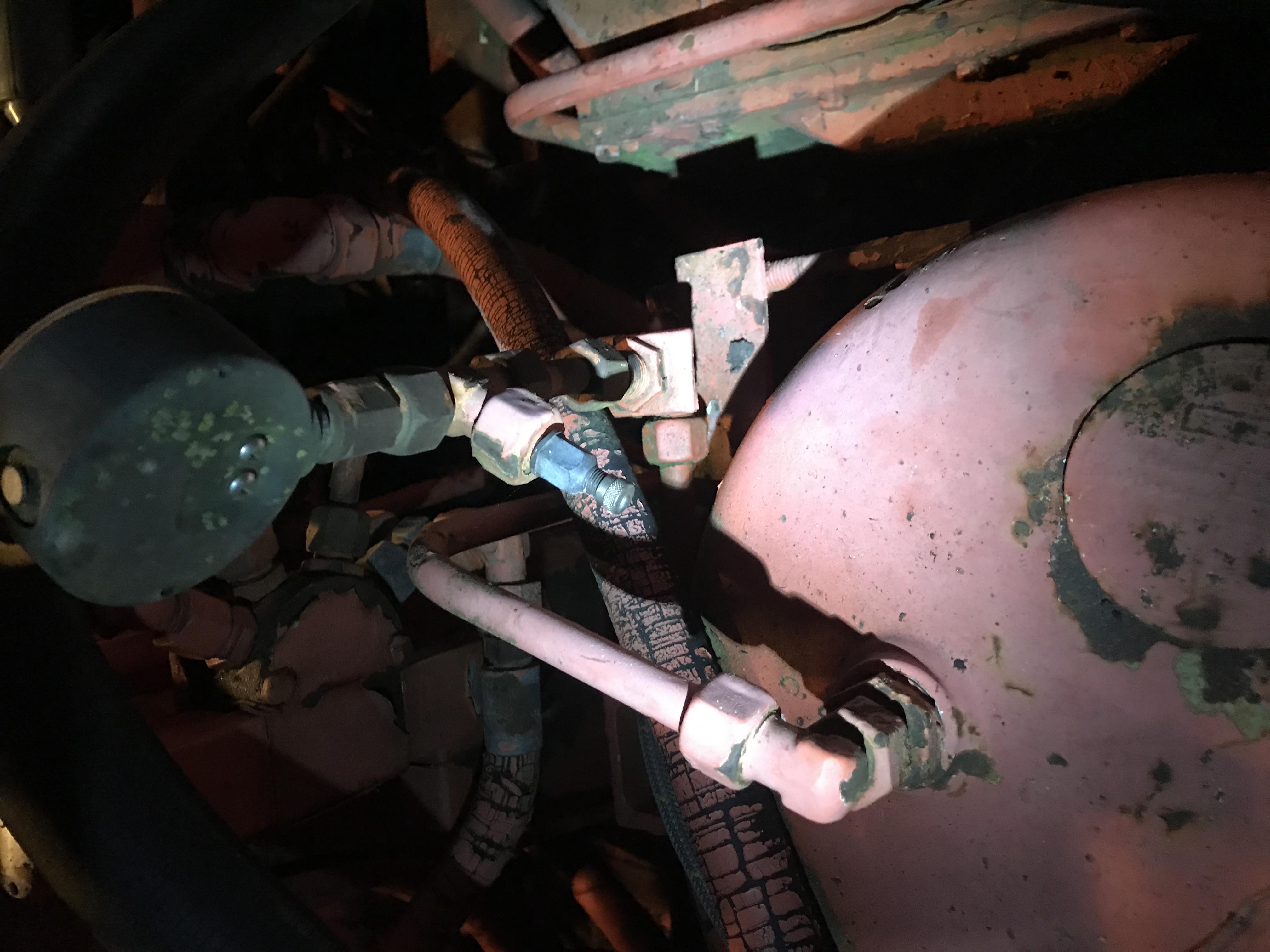 Das Manometer wird getauscht, dient das Radventil (Bildanhang) unter dem Manometer als externer Messpunkt, oder kann man dort bedenkenlos die Anlage leicht unter Druck setzen, um Anzeigen etc. zu testen? Was mich bezüglich Manometern etwas gewundert hat, der Abgriff für das Manometer in der Kabine (keine Funktion) ist ebenfalls in der Nähe des Hydrauliktanks (Sicherheitsventil?)(Bildanhang). Zeigt dieses nicht den derzeiten Druck im Druckspeicher an, ähnlich wie bei Treckern?