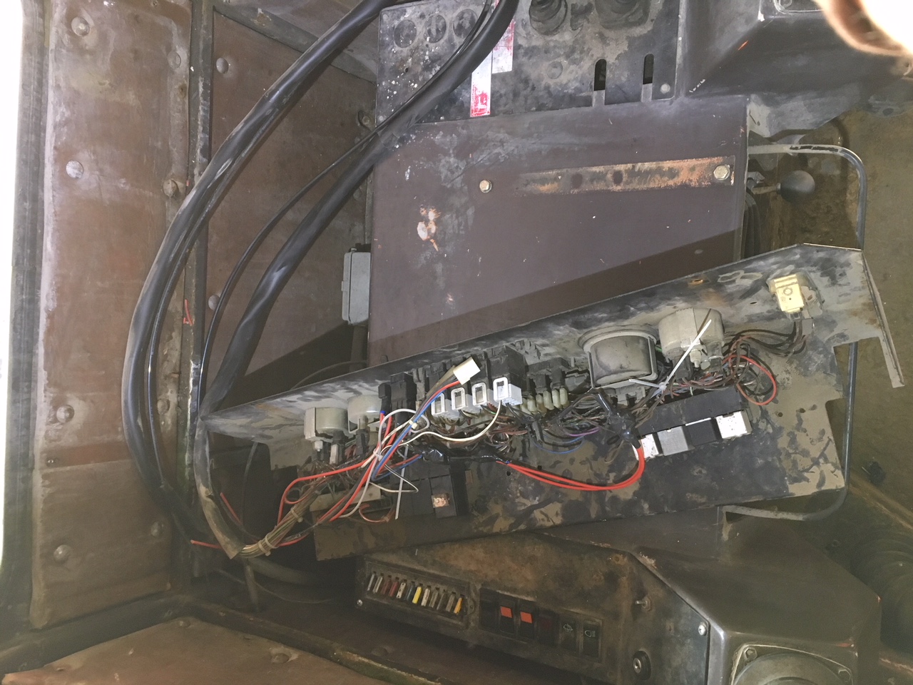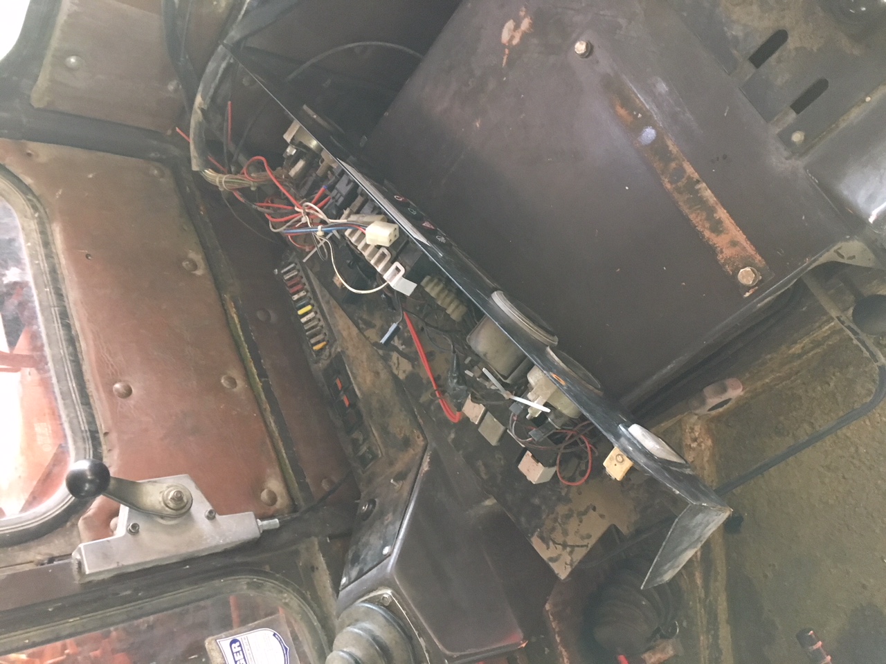 Das gut erhaltene Armaturenbrett... bis auf diesen schei... Schalter den der Vorgänger so herzlos in das Blech geferkelt hat! :-(