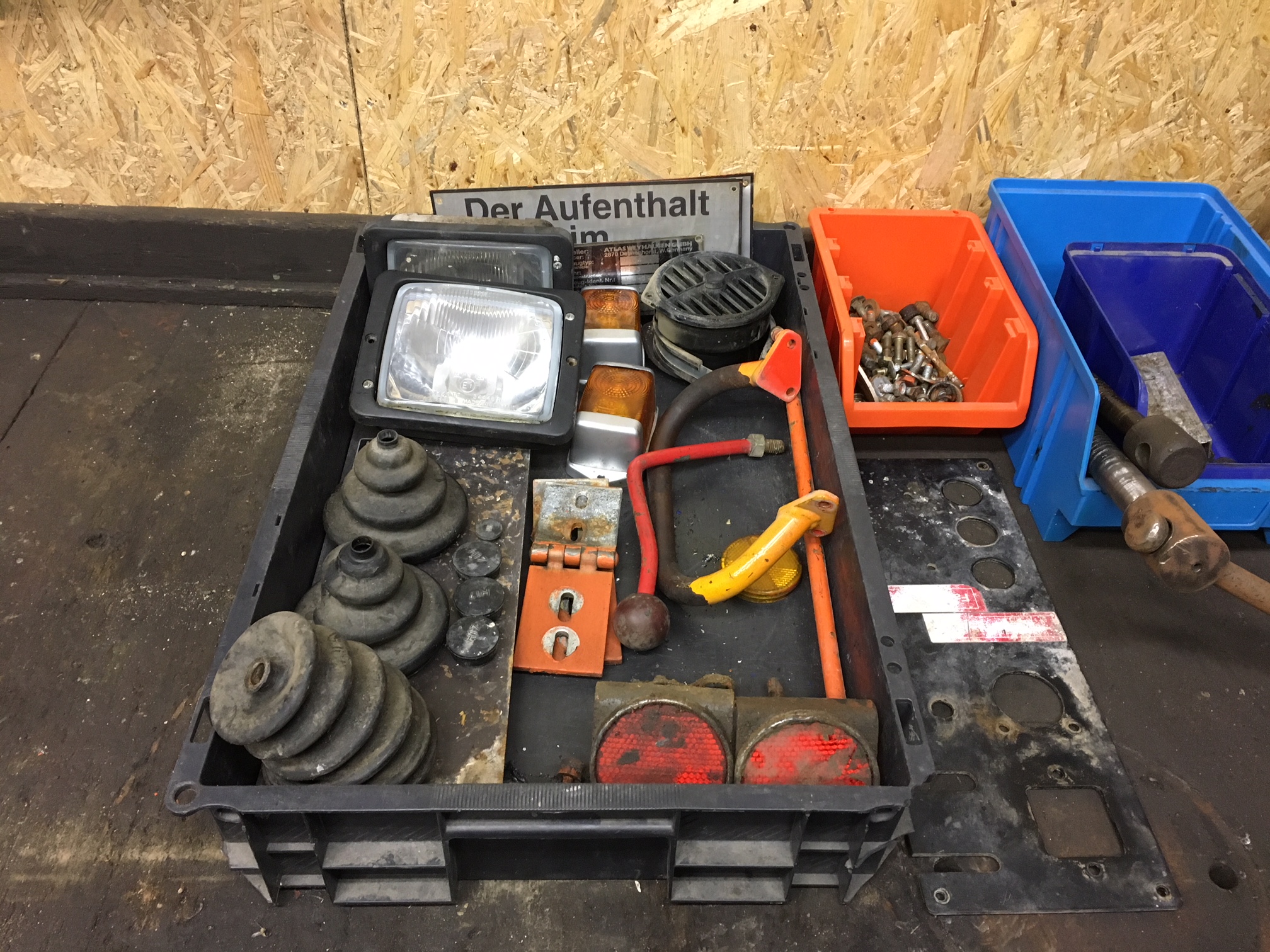 Greiferzähnen noch die original Anbaurückstrahler für das Planierschild gefunden!