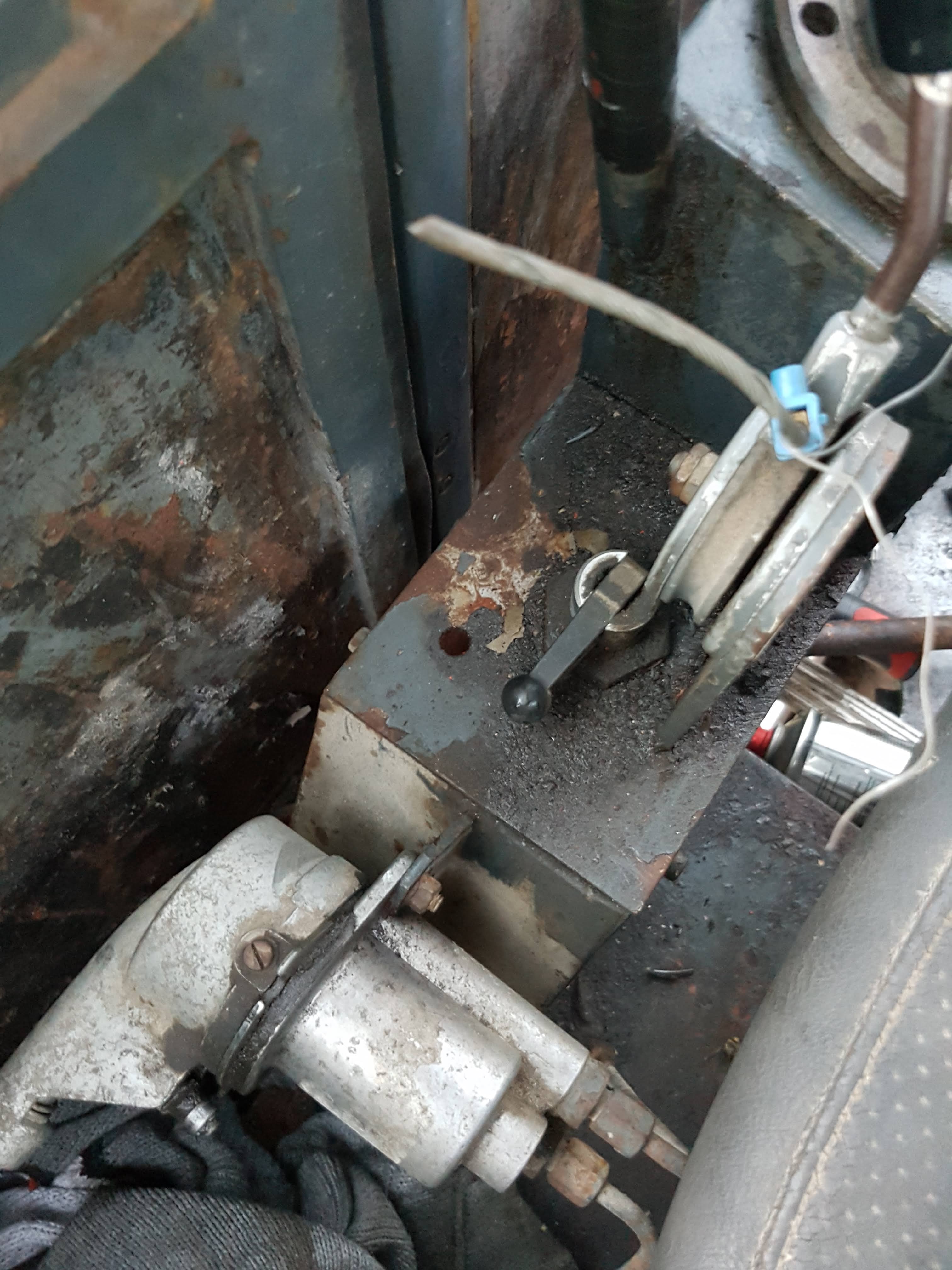Viel hast Du da unten eigentlich nicht an Luft. Die Handbremse, aber da ist ja der Hebel in der Kabine hinten links und die Pendelachssperre, aber dafür hast Du ja eigentlich das Pedal.