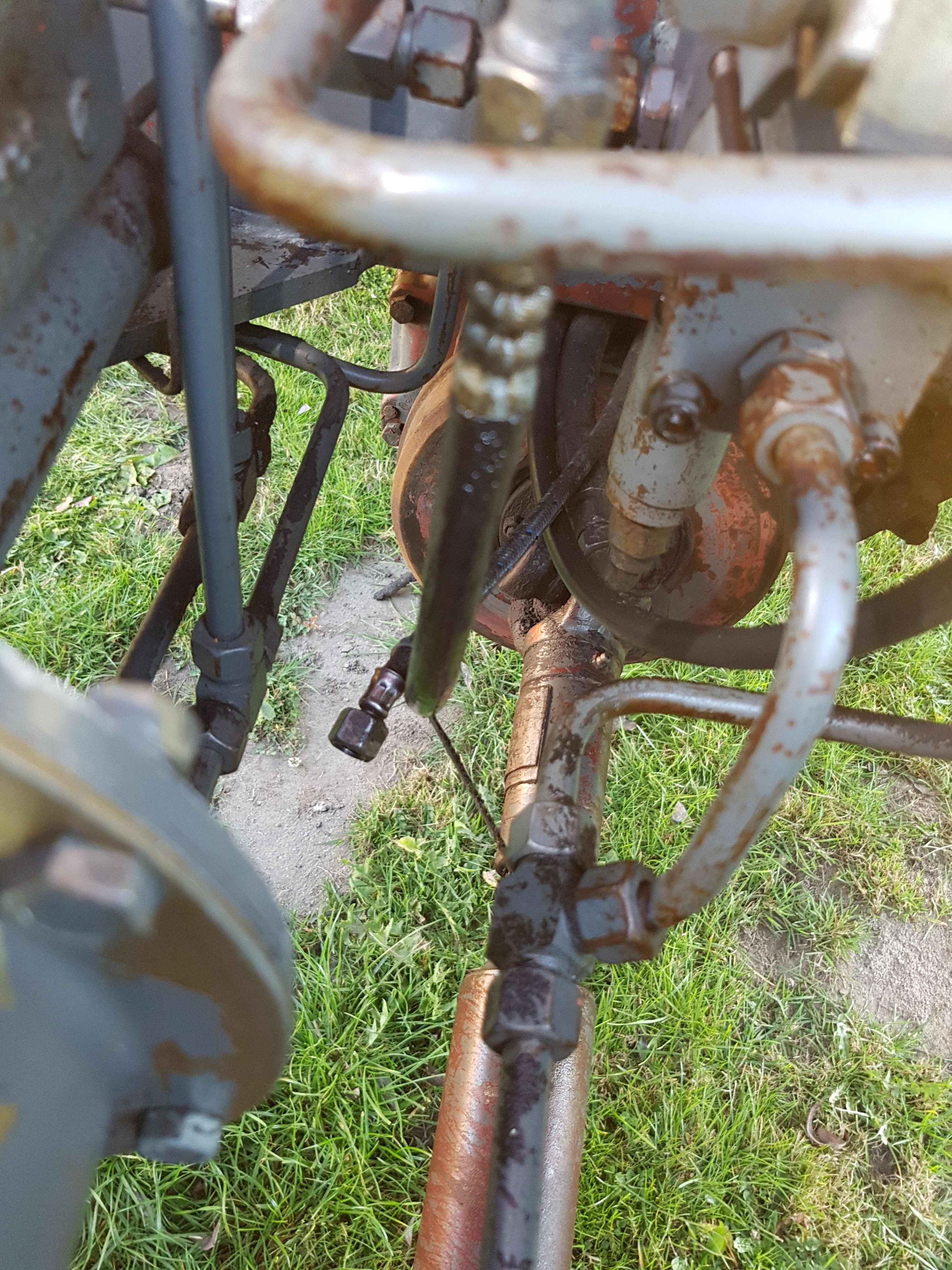 Der Schalter am Gashebel sollte im Betrieb mit zwei Fahrmotoren, diese von Parallel (langsam fahren, hohe Kraft) auf Reihe (schneller fahren, geringe Kraft) umschalten. Da bei Dir das Umschaltventil scheinbar fehlt, ist es sinnvoll zu wissen ob da zwei Fahrmotoren verbaut sind.