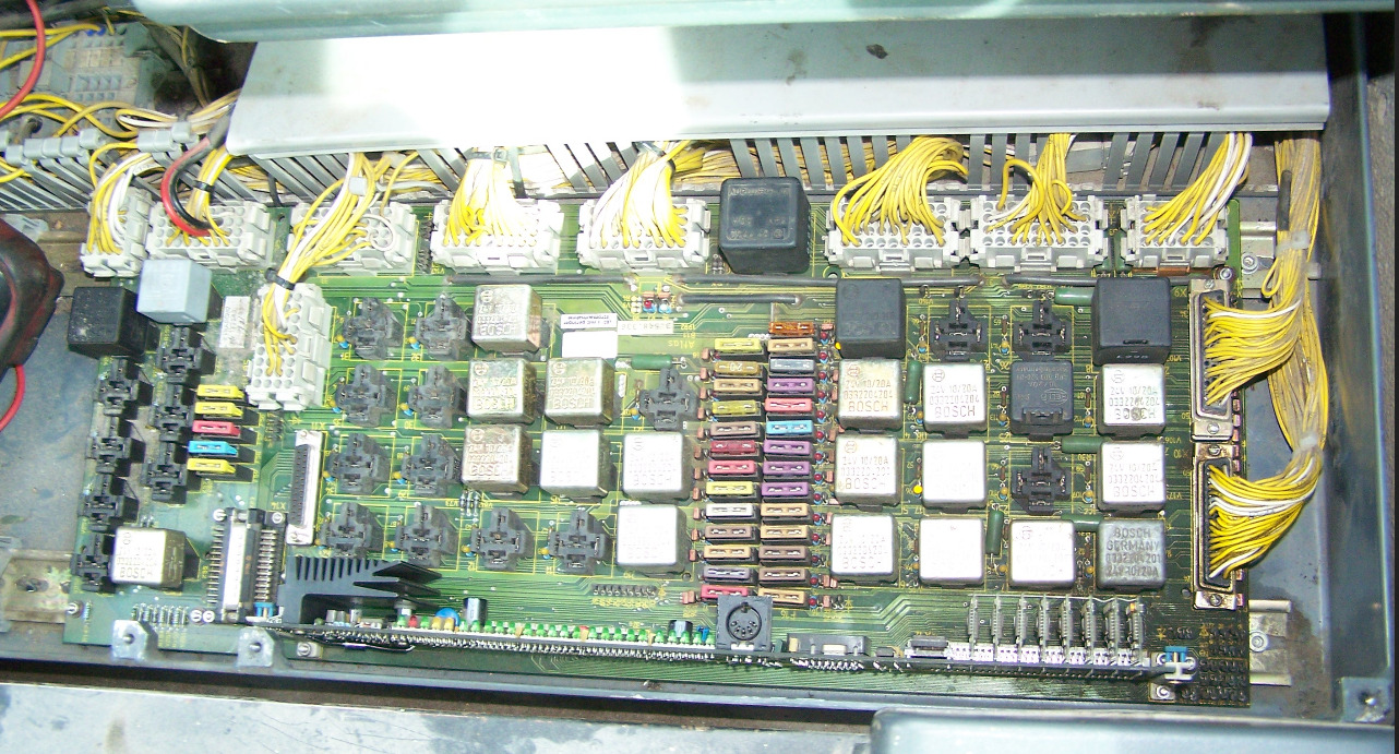 Pin 5 Ausgang Poti (wenn das Poti auf 0 steht, sollten ca. 4,2 Volt herauskommen, je höher Du drehst, umso geringer wird die Spannung). Dieses Kabel geht zuerst auf den Stecker X9 Pin 48 und dann auf die Rechnerplatine, Stecker X13 Pin c17.
