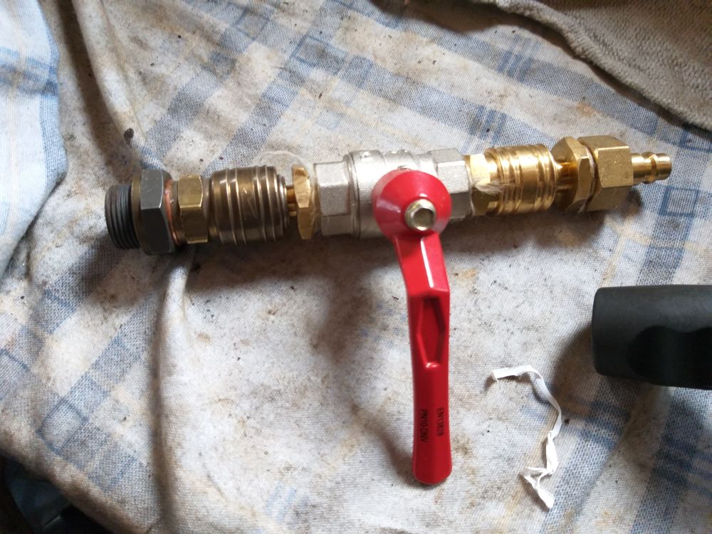 Ich hab mir dann einen Einschrauber gebaut, da kann ich dann direkt meinen Luftschlauch bzw. einen Kugelhahn anschließen.