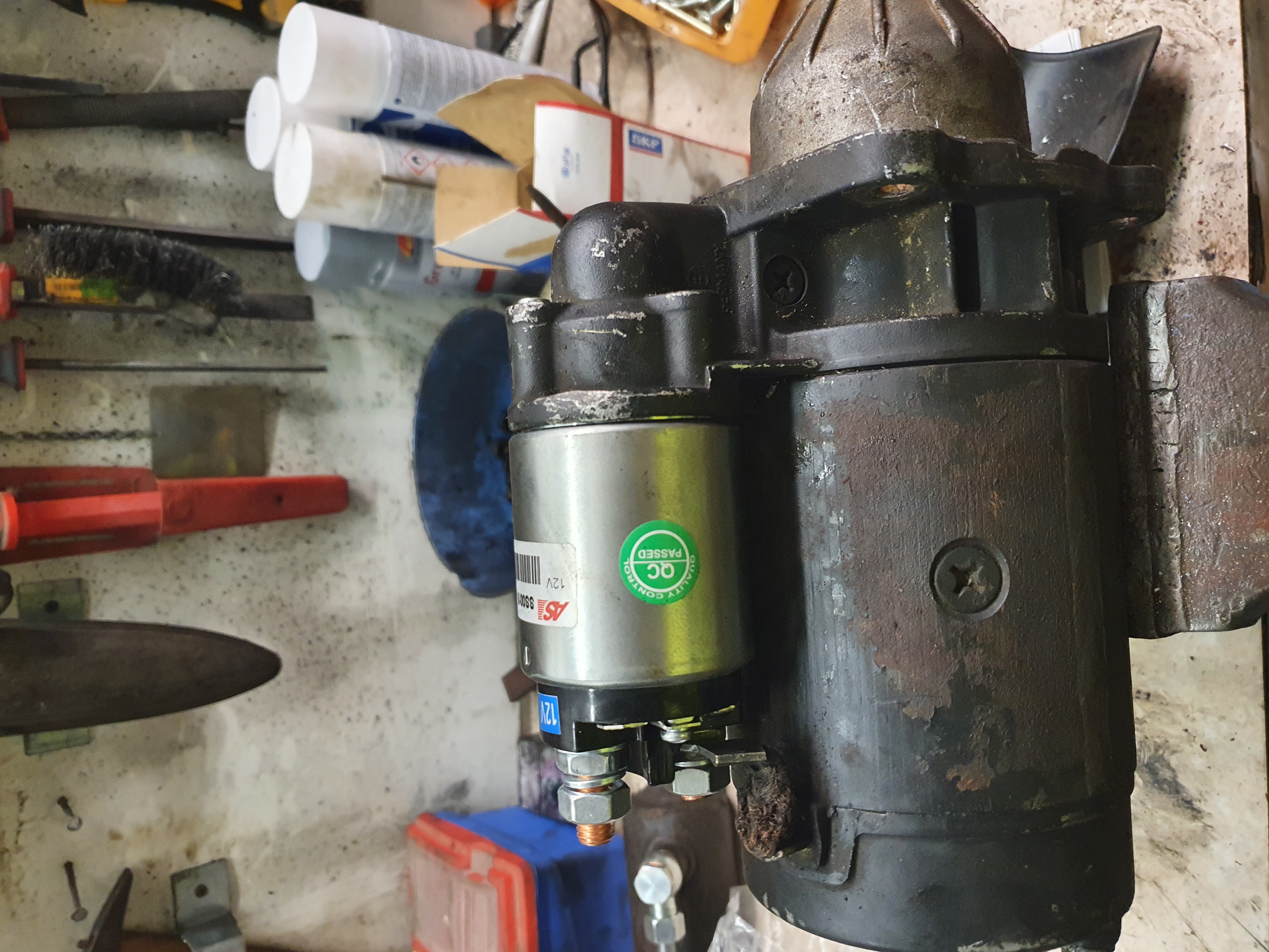 Als erstes hab ich erstmal neue Kohlen in den Anlasser gelötet und heute kam der neue Zugmagnet dafür. Den werd ich morgen einbauen.