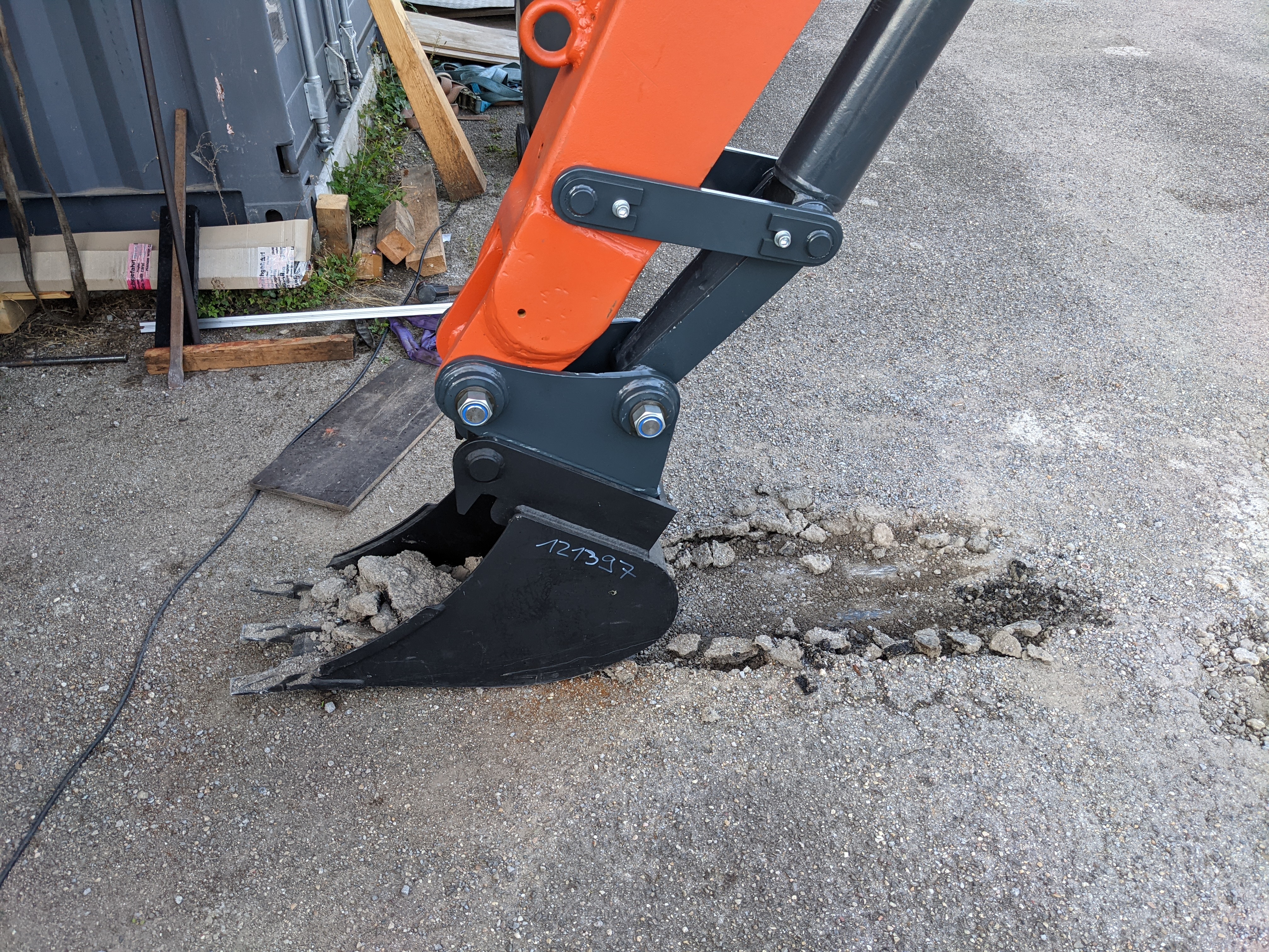 Anschließend haben wir noch den Schnellwechsler und eine Schaufel angebaut. Und das aller erste Mal "gebaggert"
