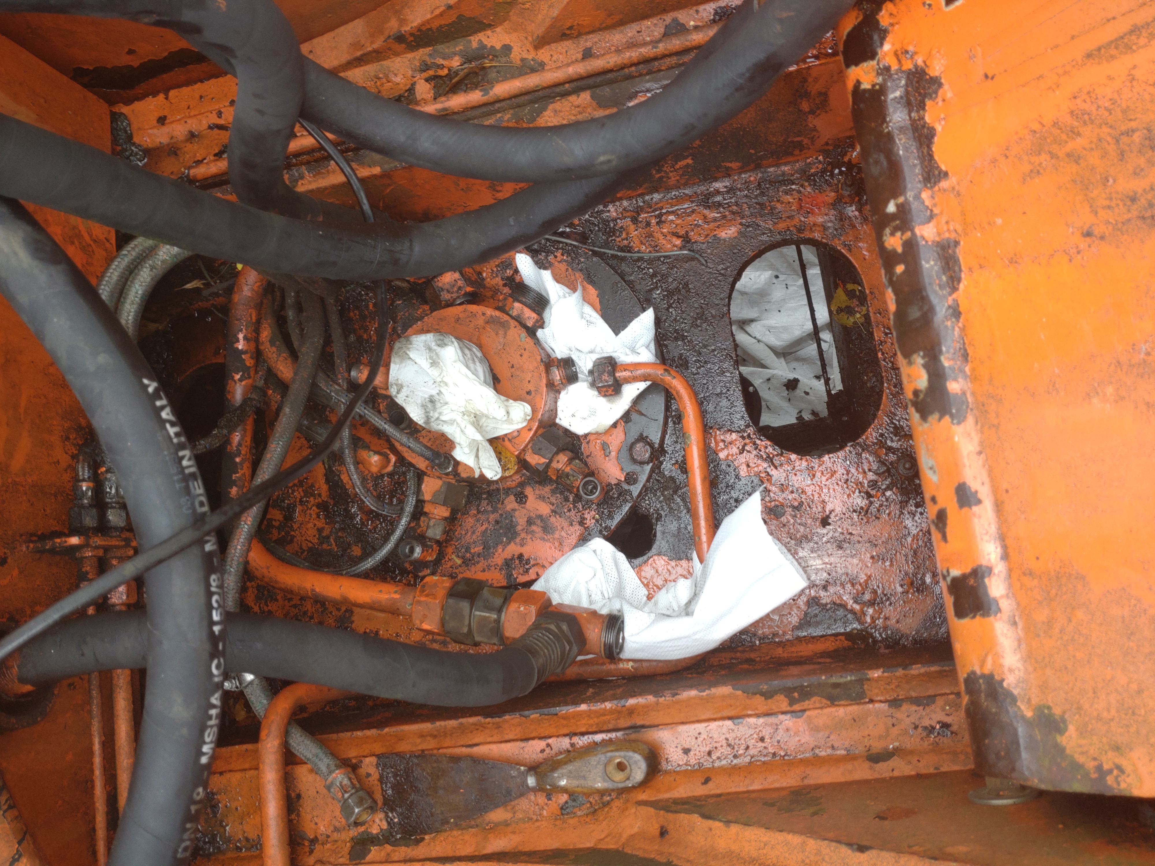 Nun ist der Bagger erstmal gut eingepackt, sodass kein Regen oder Dreck an die Hydraulikanschlüsse kommt.