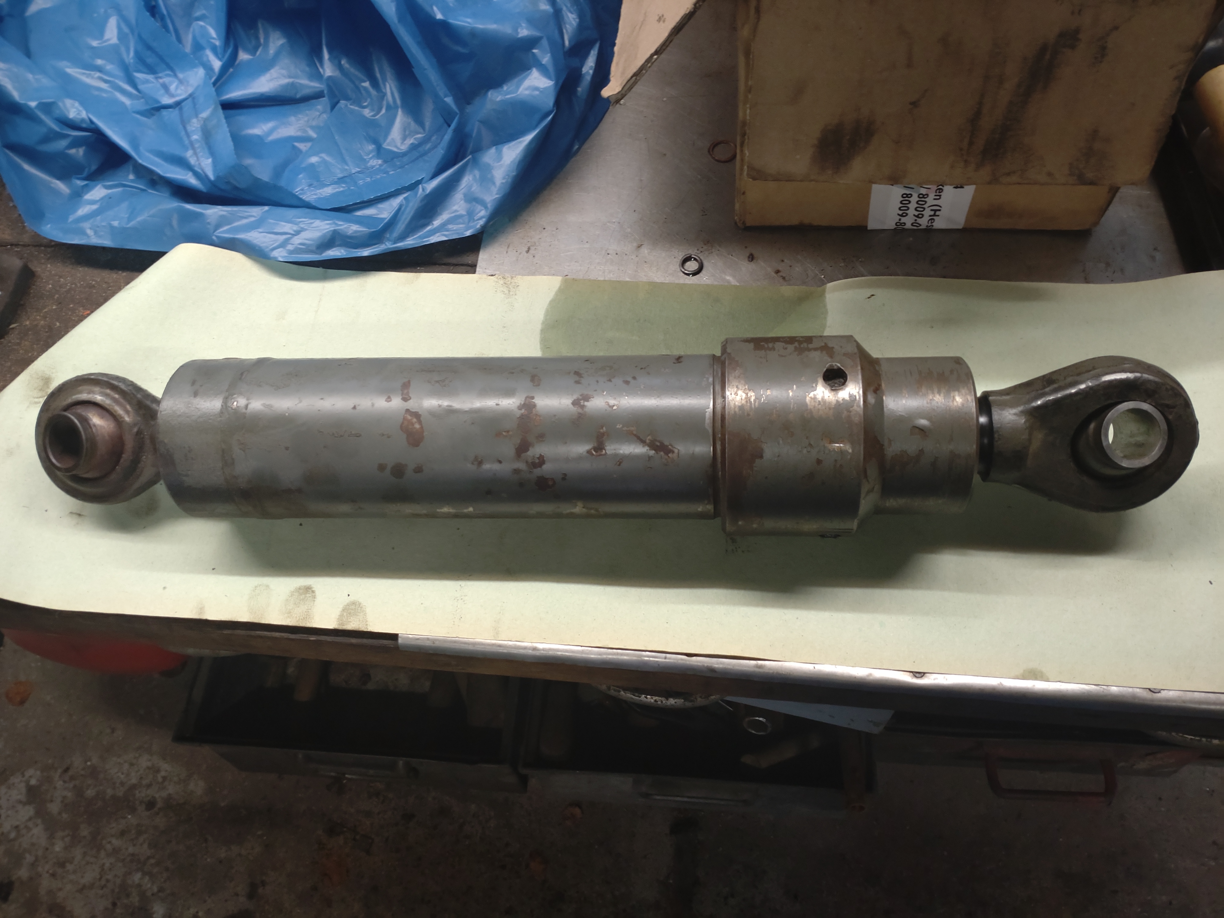 So heute ging es (leider nur ein bisschen) weiter. Der Lenkzylinder ist zusammengebaut und wieder an seinem Platz. Leider gab es einen ziemlichen Wolkenbruch, weshalb ich nicht mehr dazu kam das Hydrauliköl zu wechseln. Wenn alles gut läuft, ist das morgen dran.