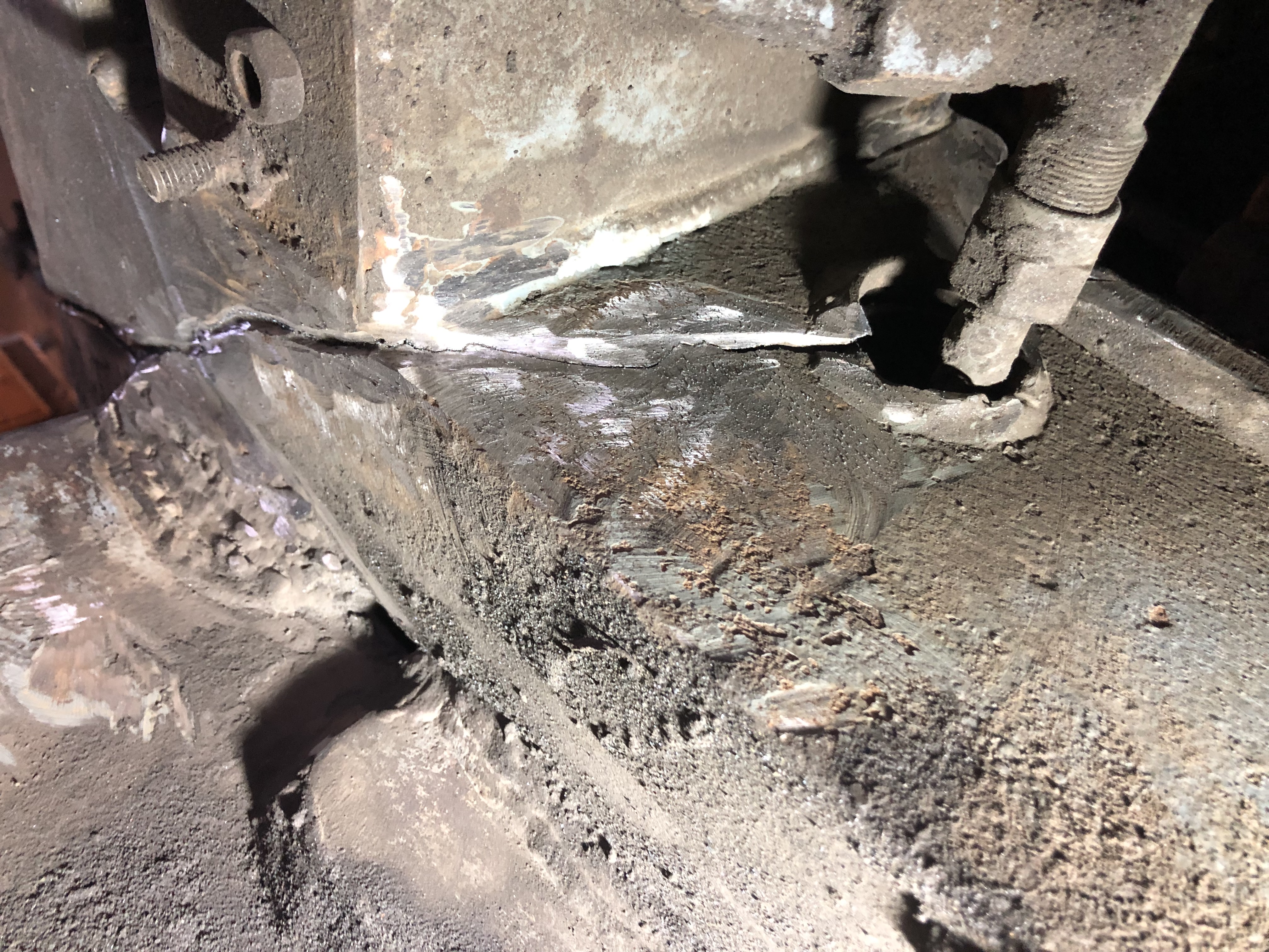 Den Riss am Fahrgestell habe ich gereinigt und frei geschliffen. Ich habe mich erschrocken wie groß / wie weit der Riss ist. Mein Bekannter (gelernter Pipeline Schweißer) unterstützt mich beim schweißen