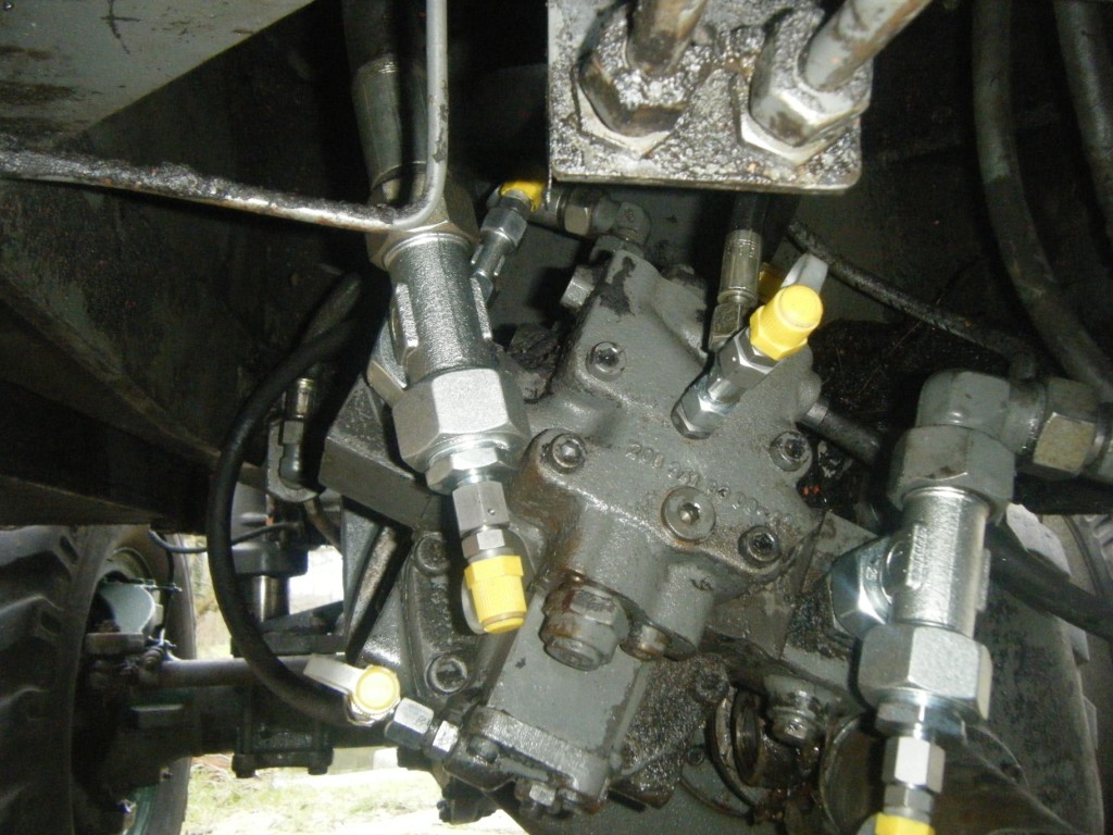 Sollte diese Düse verstopft sein, bleibt der Motor auf geringstem. Verstellwinkel ausgeschwenkt, da sich der Steuerdruck nicht mehr vor dem Topfkolben aufbauen kann, d. h. , die Fahrleistung (das Drehmoment) bleibt gering, wobei aber die max. Fahrgeschwindigkeit auf ebenem Gelände erreicht werden kann.