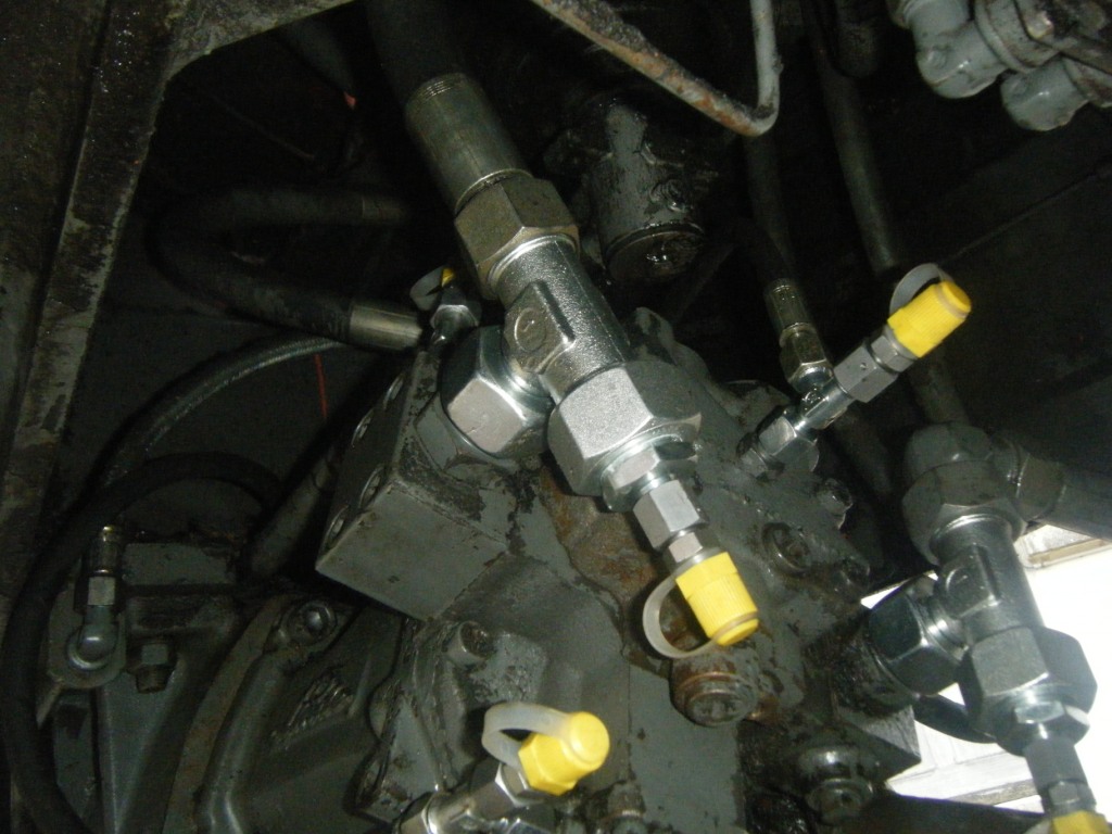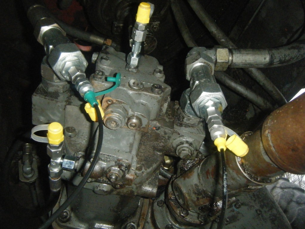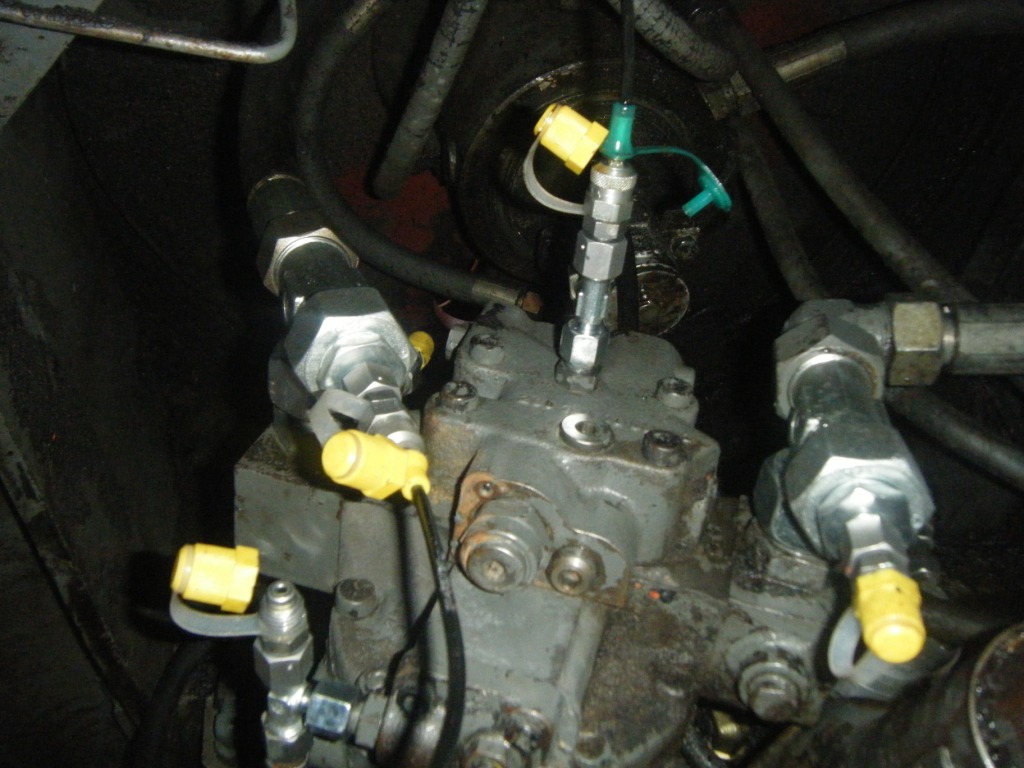 Nach einer langen Verzögerung, habe ich eine Druckmesspunkt an jeden Hydraulikschlauch auf den Fahrmotor aufgenommen. Die Lieferungen aus http://www.hytec-hydraulik.de/ kam