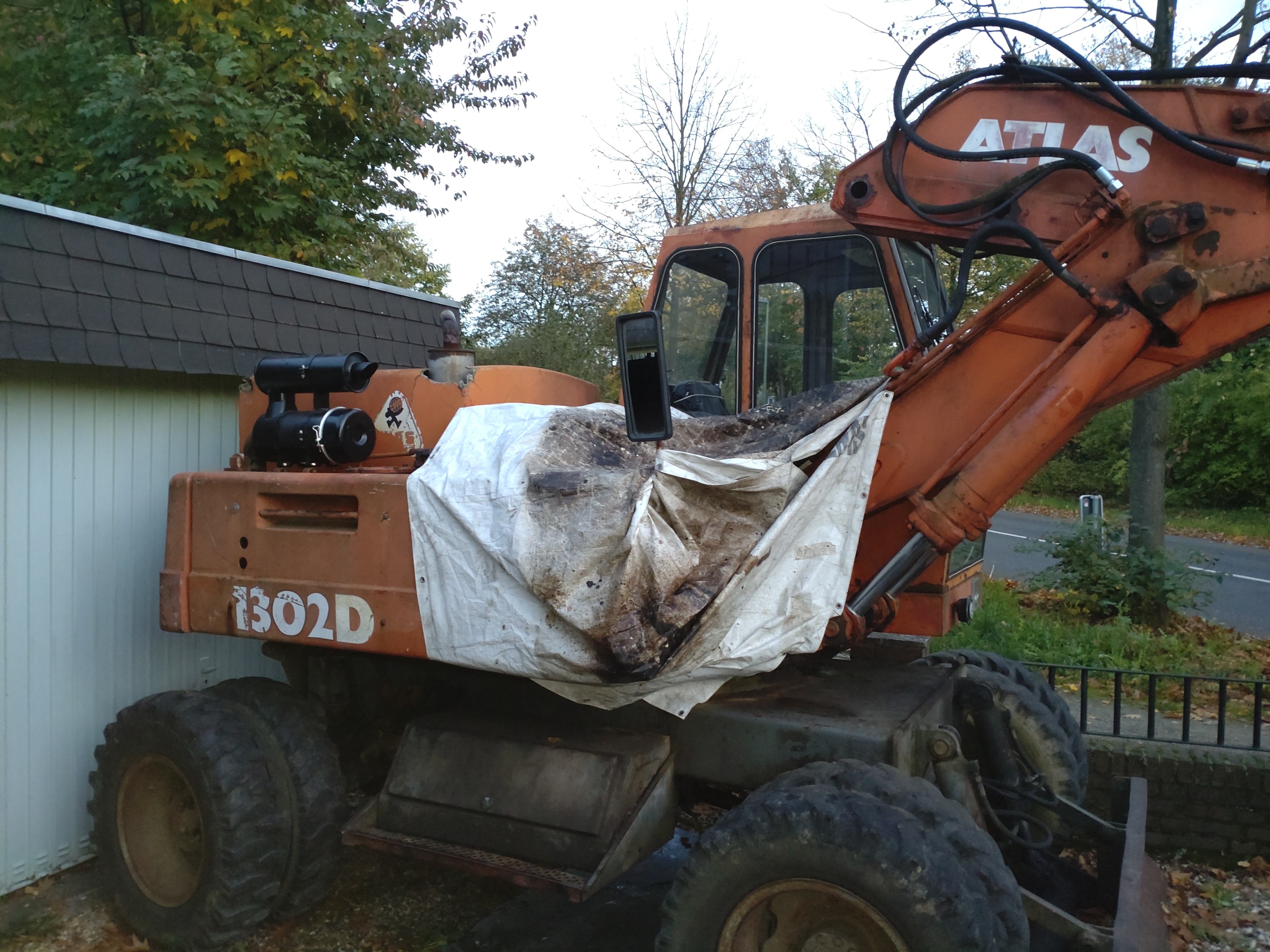 Nun ist der Bagger erstmal gut eingepackt, sodass kein Regen oder Dreck an die Hydraulikanschlüsse kommt.