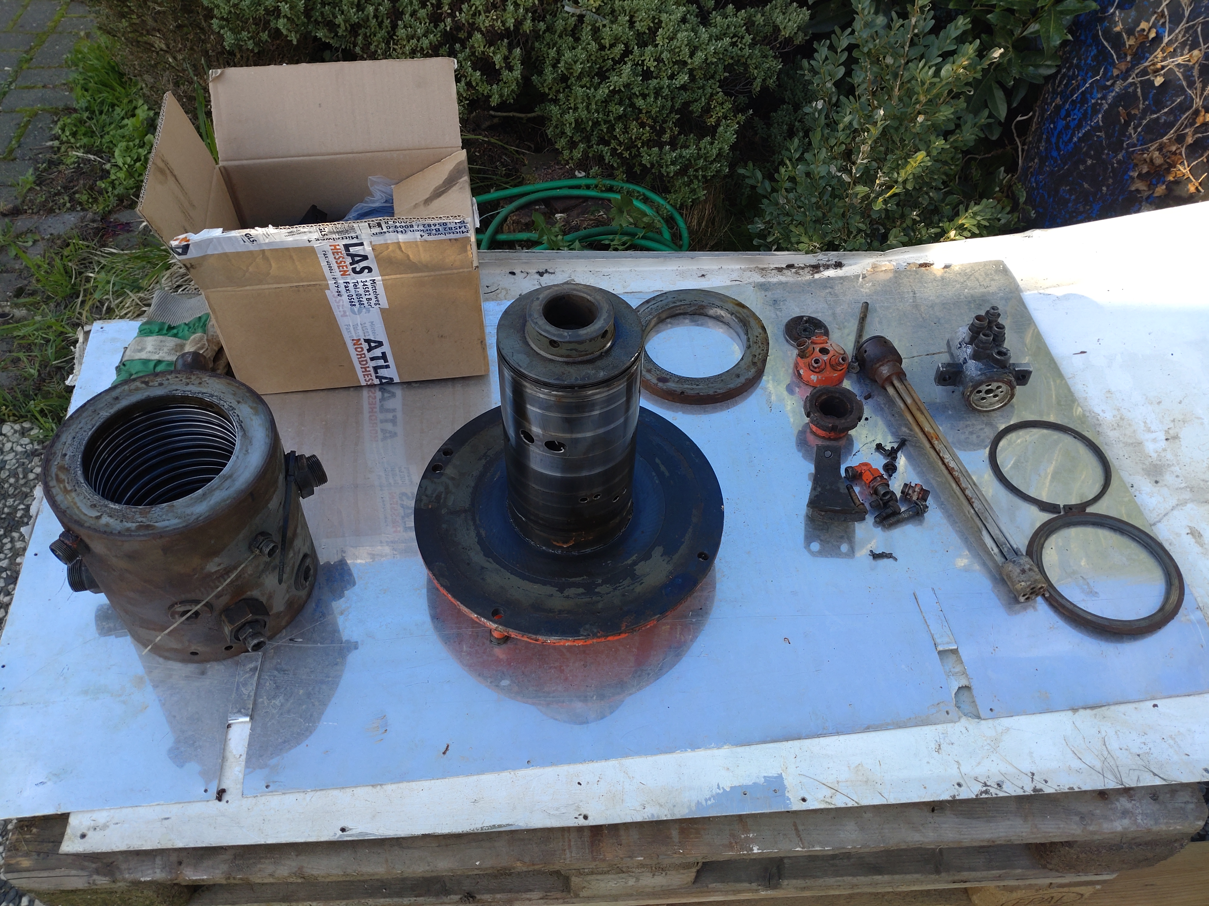 Ich hatte nun vorab nur für die Hydraulik die Dichtungen bestellt. Für den Druckluft-Part sind leider nichtmehr alle Teile so ohne weiteres nach Ersatzteilnummer bestellbar. Hier konnte mir Atlas Nordhessen aber nach 2-3 Telefonaten mit Atlas weiterhelfen. Für die O-Ringe und Dichtplatten oben und unten konnten so noch Teile ermittelt werden, die nicht im Bestell-System auftauchen. Hier warte ich noch auf die Lieferung.