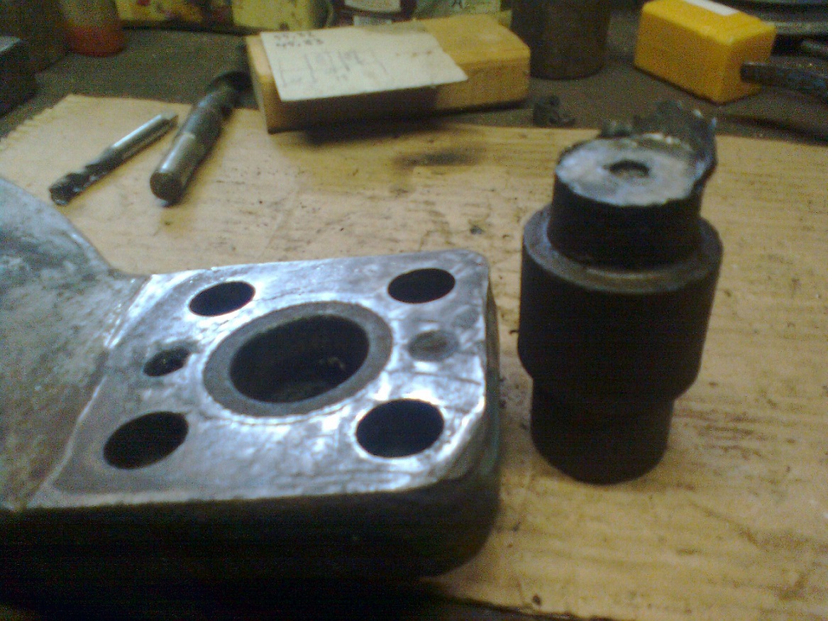 weiter gehts achsbolzen ausbauen und neu anfertigen da hat irgend einer mist gebaut das sieht aus als ob den schon mal einer versucht neu zu machen aber viel zu kurz kein wunder das der raus gebrochen ist.