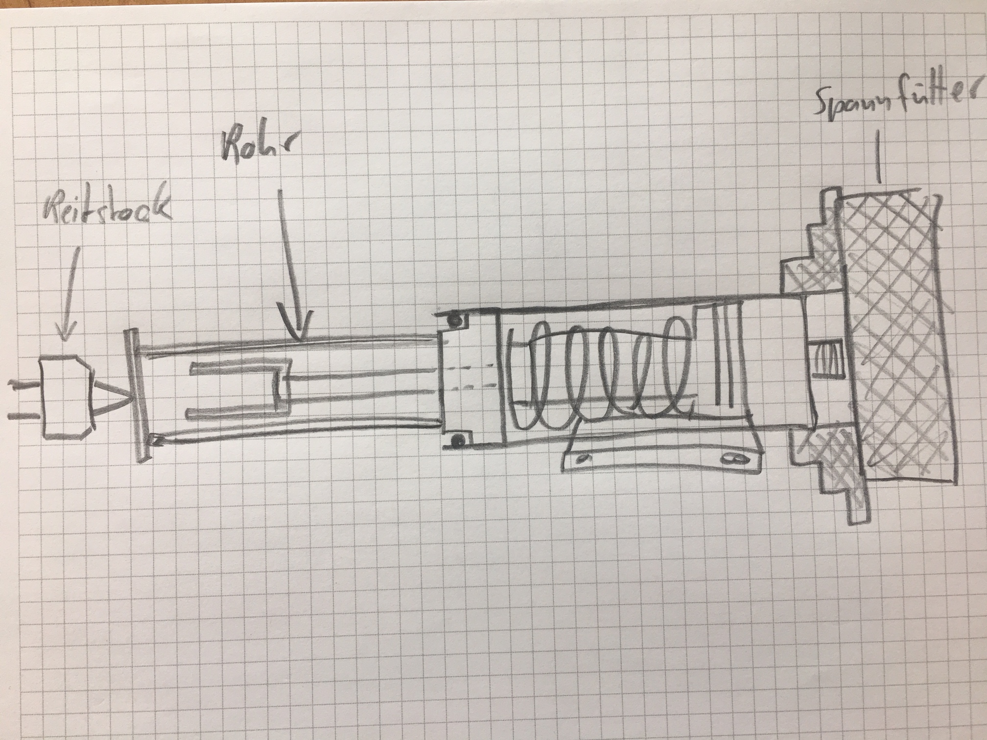 das öffnen des Federspeichers, kann man auch einfacher tätigen, indem man die Schaltgabel (4) mit Kontermutter entfernt und ein Rohr, mit Unterlegscheibe aufsteckt. Dann kann man die Feder mit einer Mutter spannen und den Zylinder öffnen.