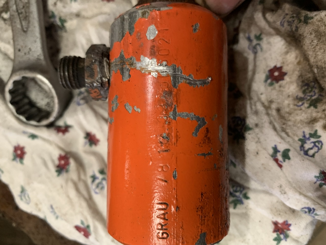 Ich will dort alles sauber machen, muss dann die Bremsflüssigkeit auffüllen um die Bremsen in Gang zu bringen. Dort unten ist noch ein Kasten an den drei Leitungen angeschlossen sind (eine zur Drehdurchführung, eine zum Handbremszylinder, die andere weiss ich noch nicht genau). Dieser Kasten ist auch undicht. Den will ich auch noch ausbauen um zu schauen ob ich den abgedichtet bekomme.