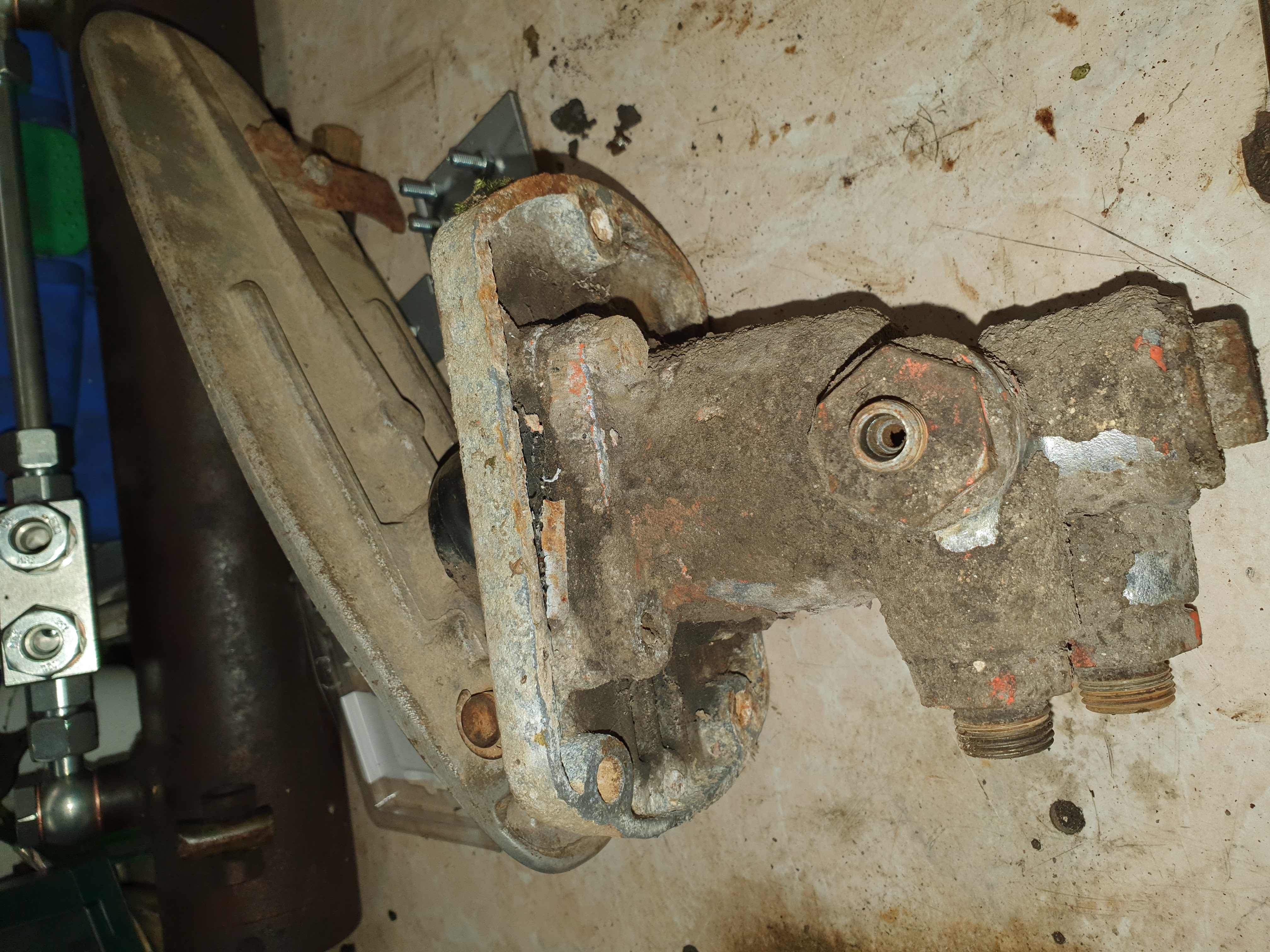 Dann gleich mal das Fusspedal für die Bremse auseinander genommen. Wie zu erwarten der blanke Siff drin...