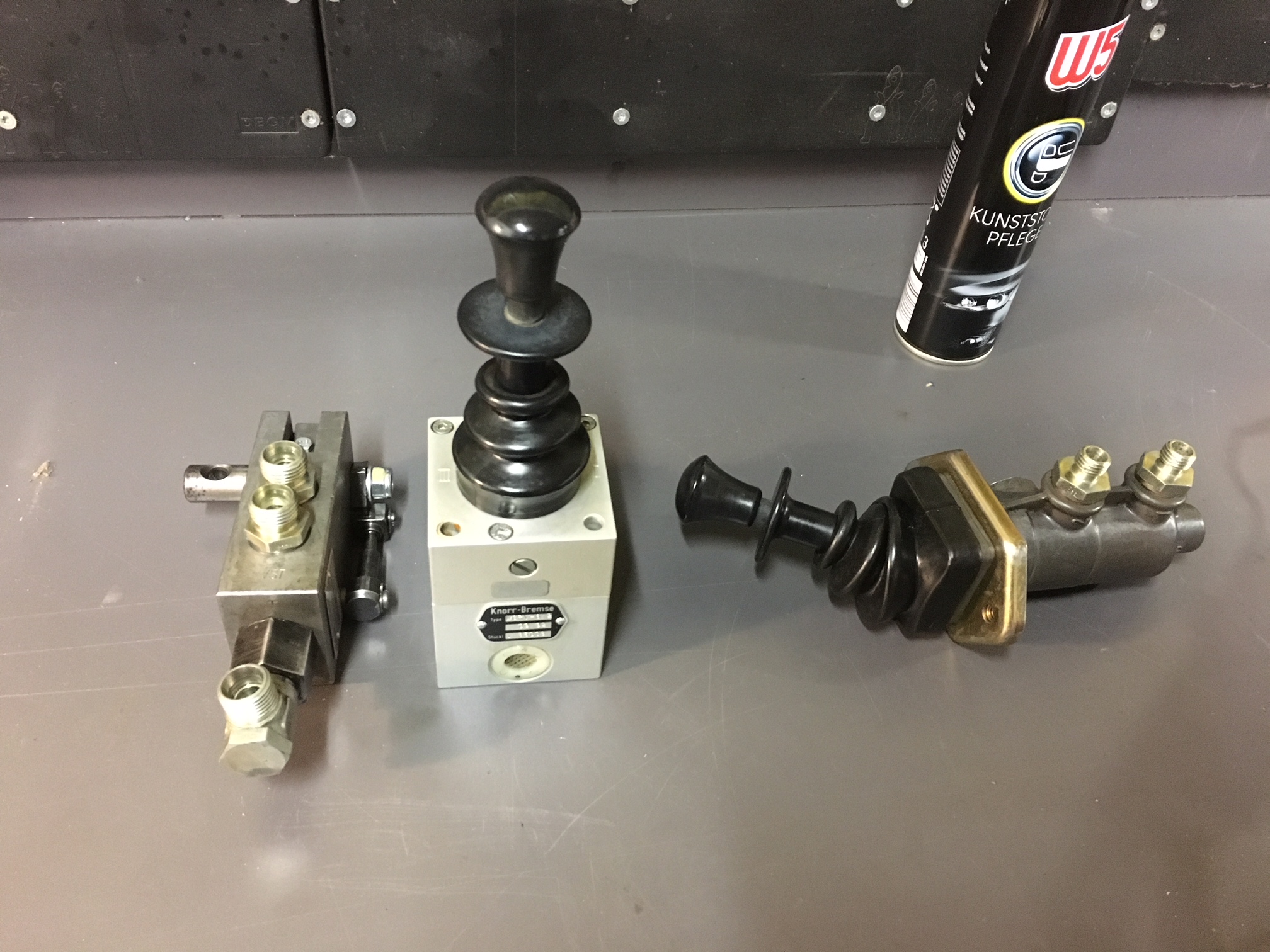Die beiden Pneumatikventile (Handbremse und Umschaltung Kriech- und Straßengang)