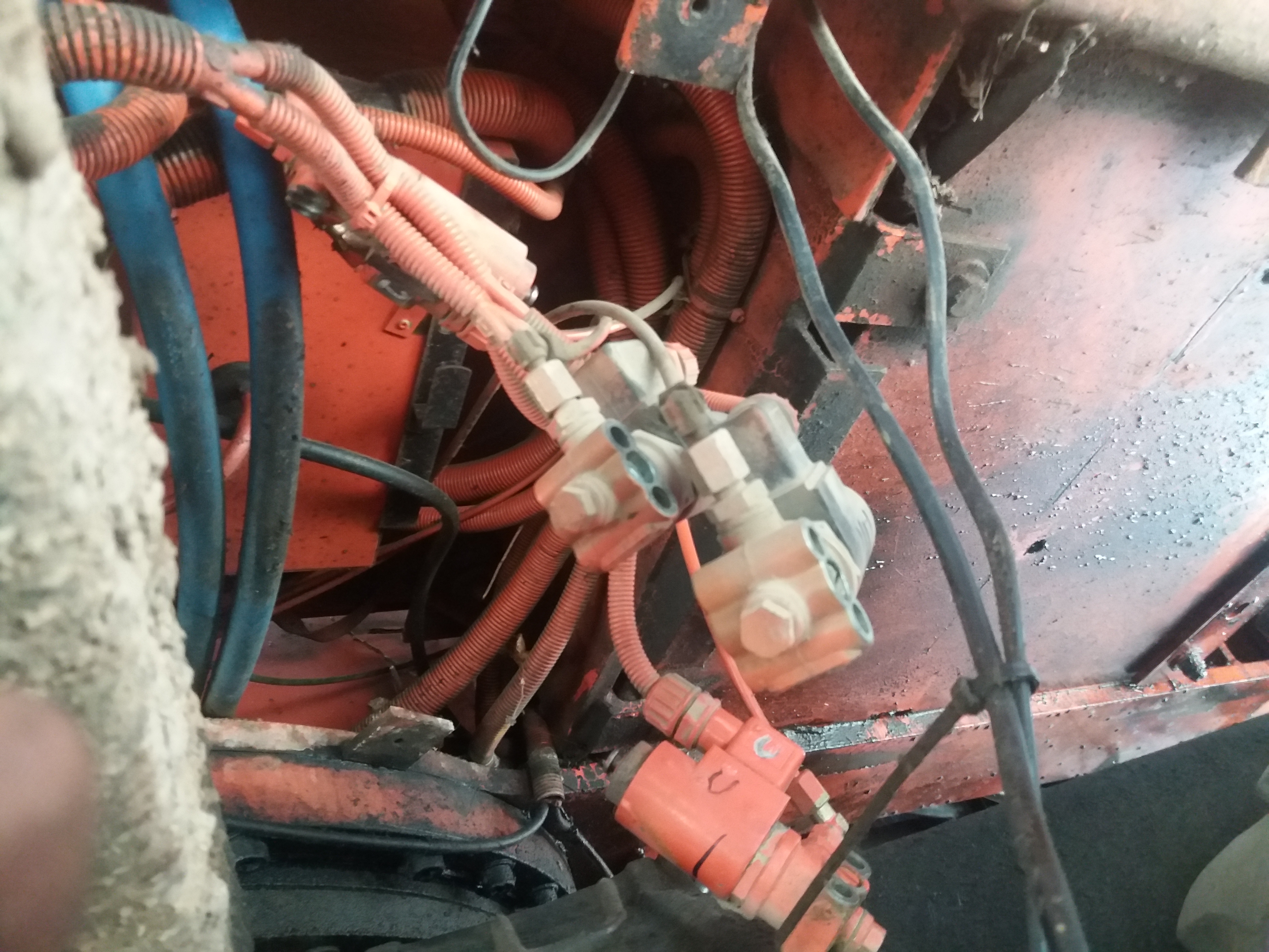 Ich habe heute wieder Zeit mit unserem bagger verbracht ,als erstes habe ich den kompressor geprüft ;drückt ordentlich was raus also an luftdruck mangelt es nicht,bis zu den Ventilen steht luftdruck an