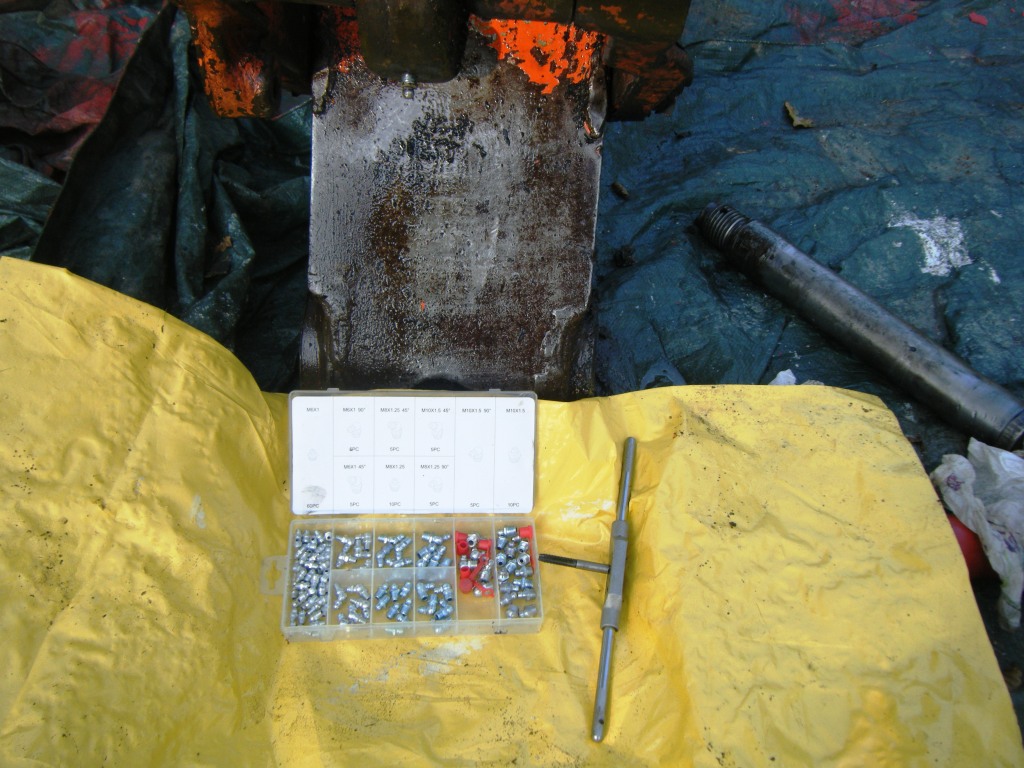 Ich glaube, dass Reparaturen wurden in der Vergangenheit gemacht, und dass die Ersatzmetallrohre zu kurz waren. Irgendwann in ferner Zukunft soll ich lernen, wie man Metall Hydraulikrohre biegen, und die beschädigten Metallrohre zu ersetzen.