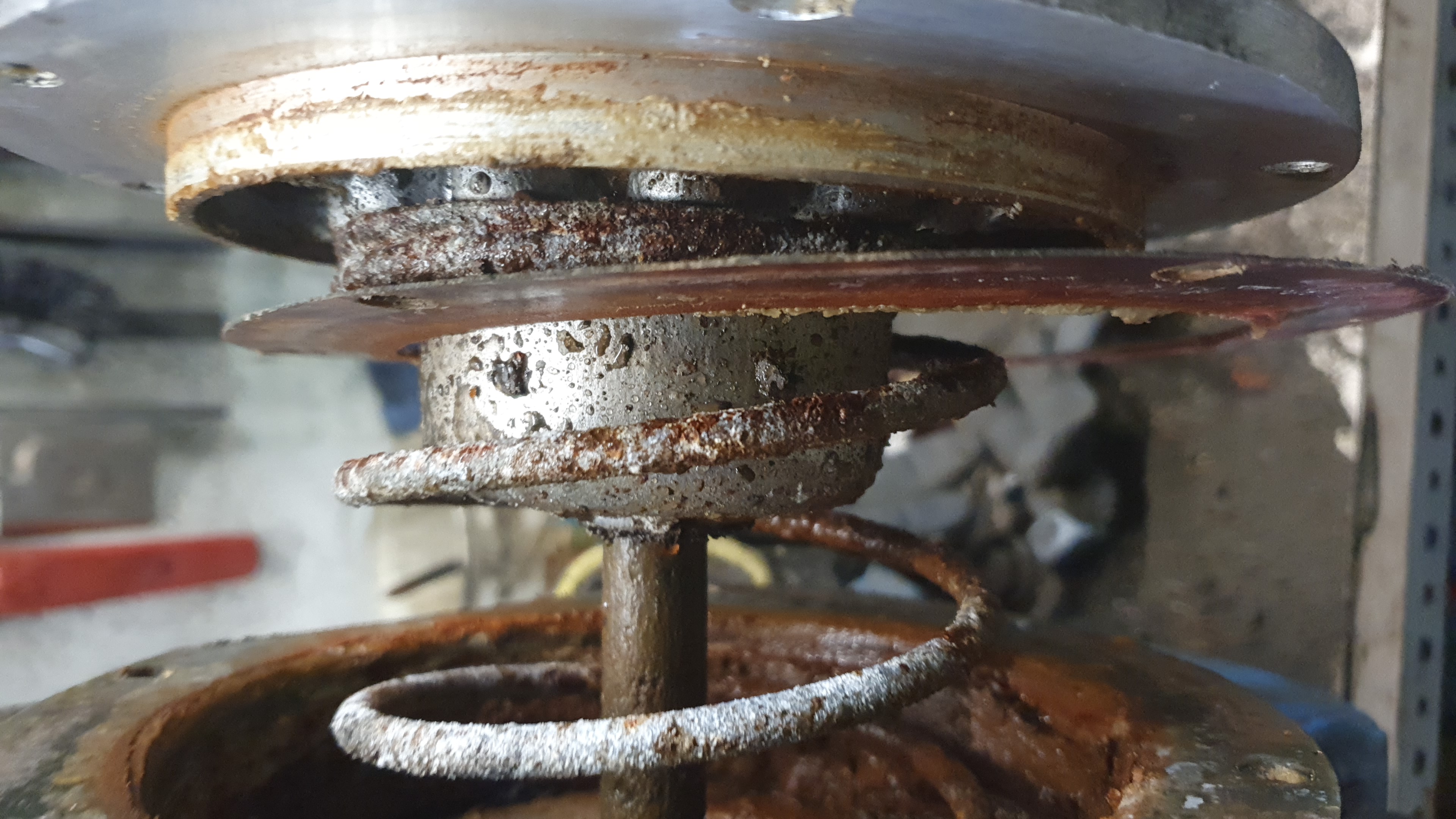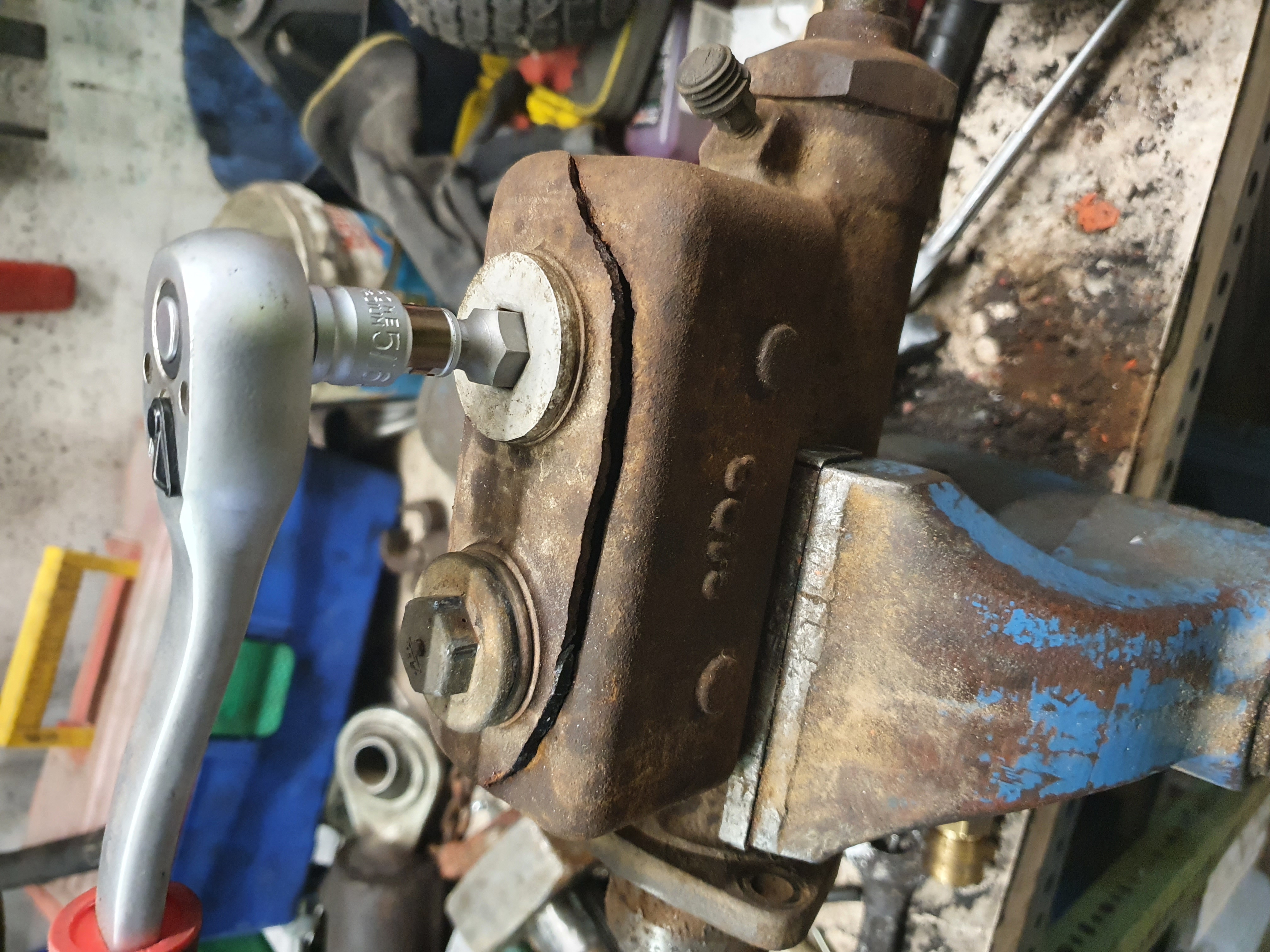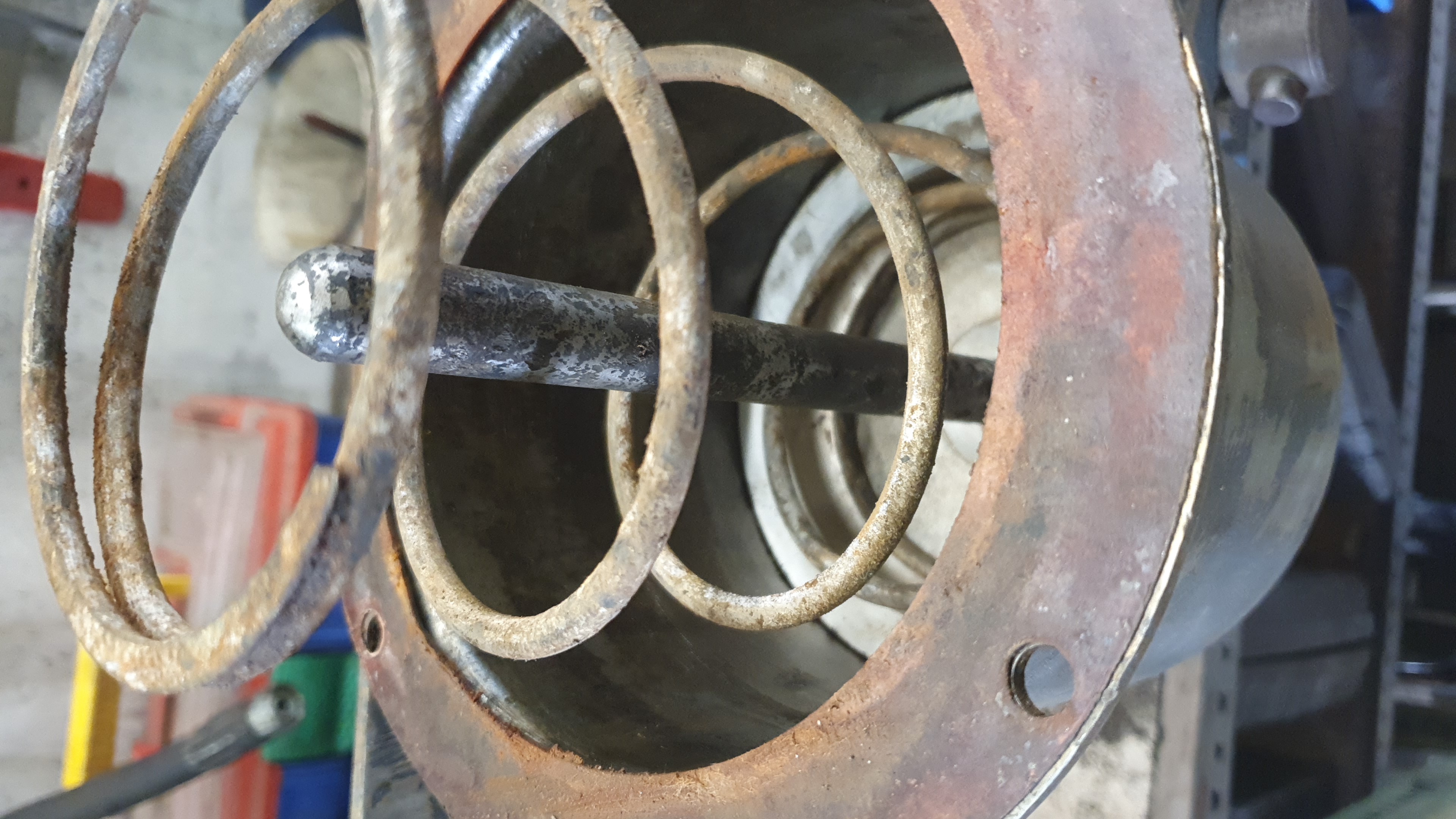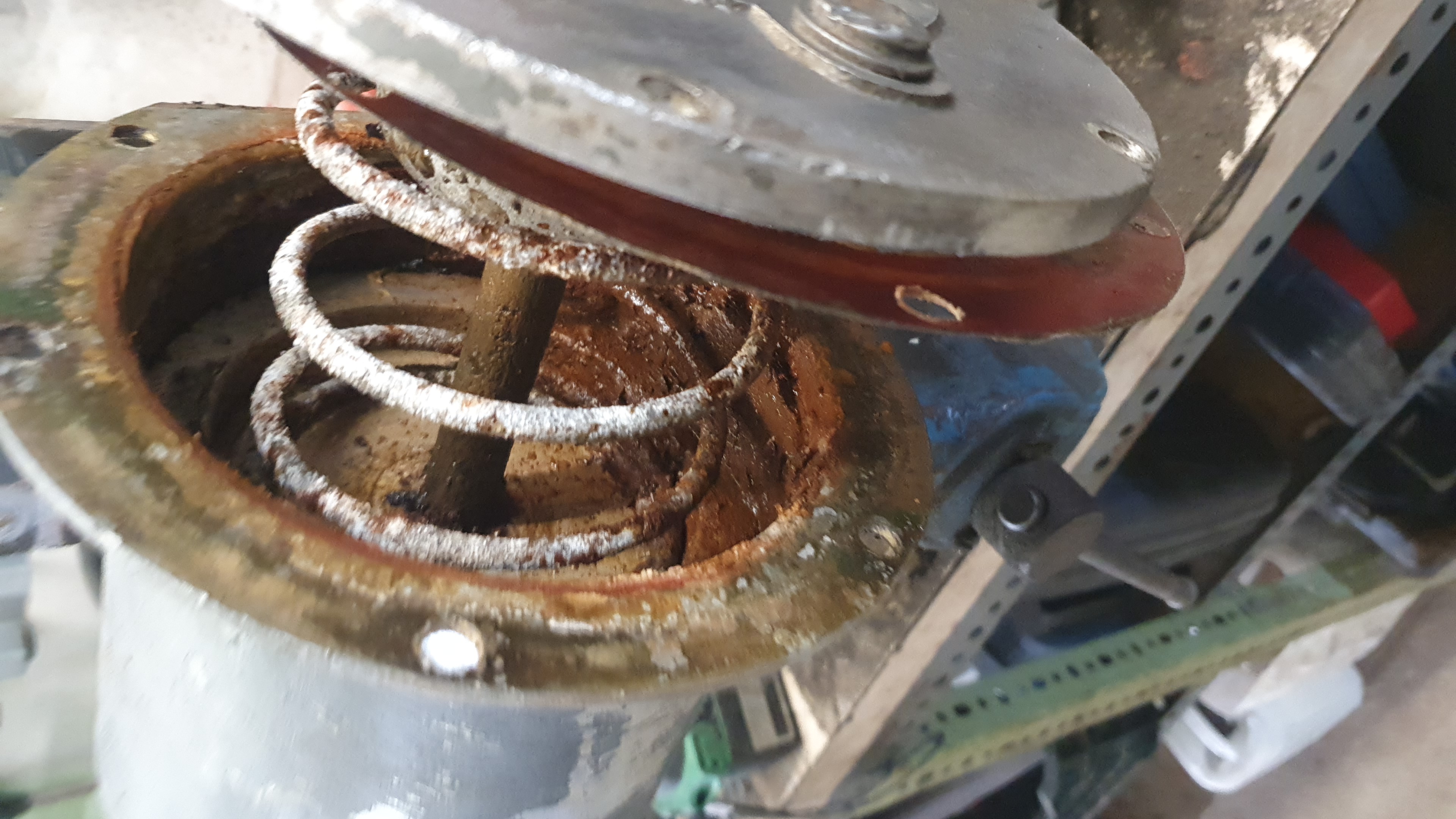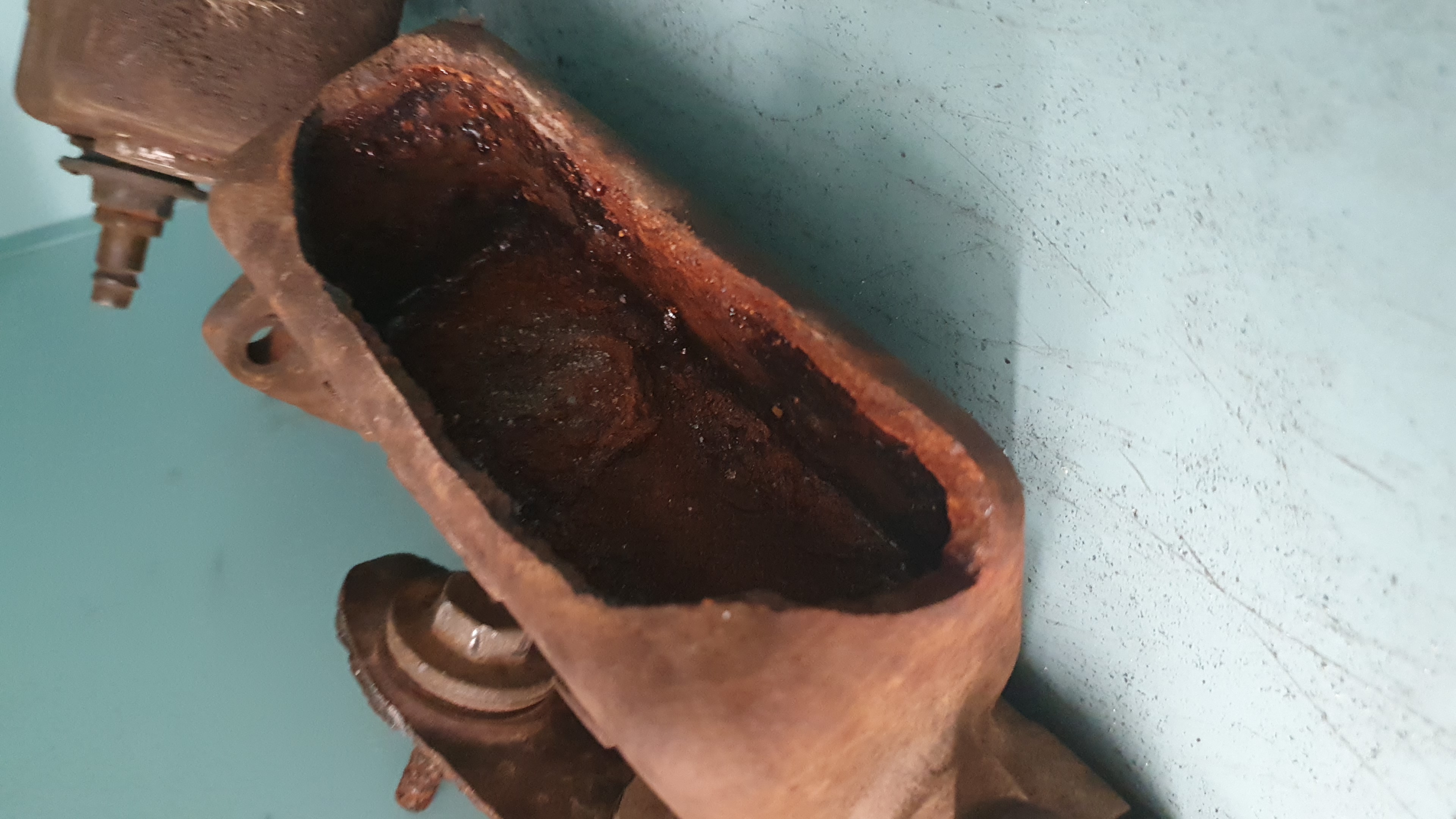 Heute mal geschaut warum das Batteriefach samt der Eberspächer immer so gewackelt hat. Siehe da die lange Schraube M16x120 war weggerissen. Und der Rest der Schraube über die Jahre zu eins geworden mit dem Bagger 😳☹️