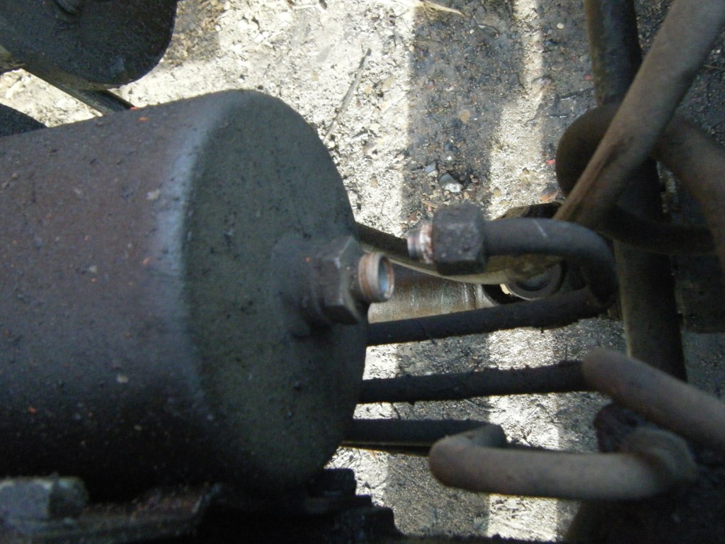 Oft sind die beiden Hauptbremszylinder vorne innerlich fest. Bedingt dadurch, daß die alten Geräte viel stehen und die Bremsflüssigkeit nicht regelmäßig gewechselt wird, so daß diese Wasser anzieht und dieses verursacht dann Rost.