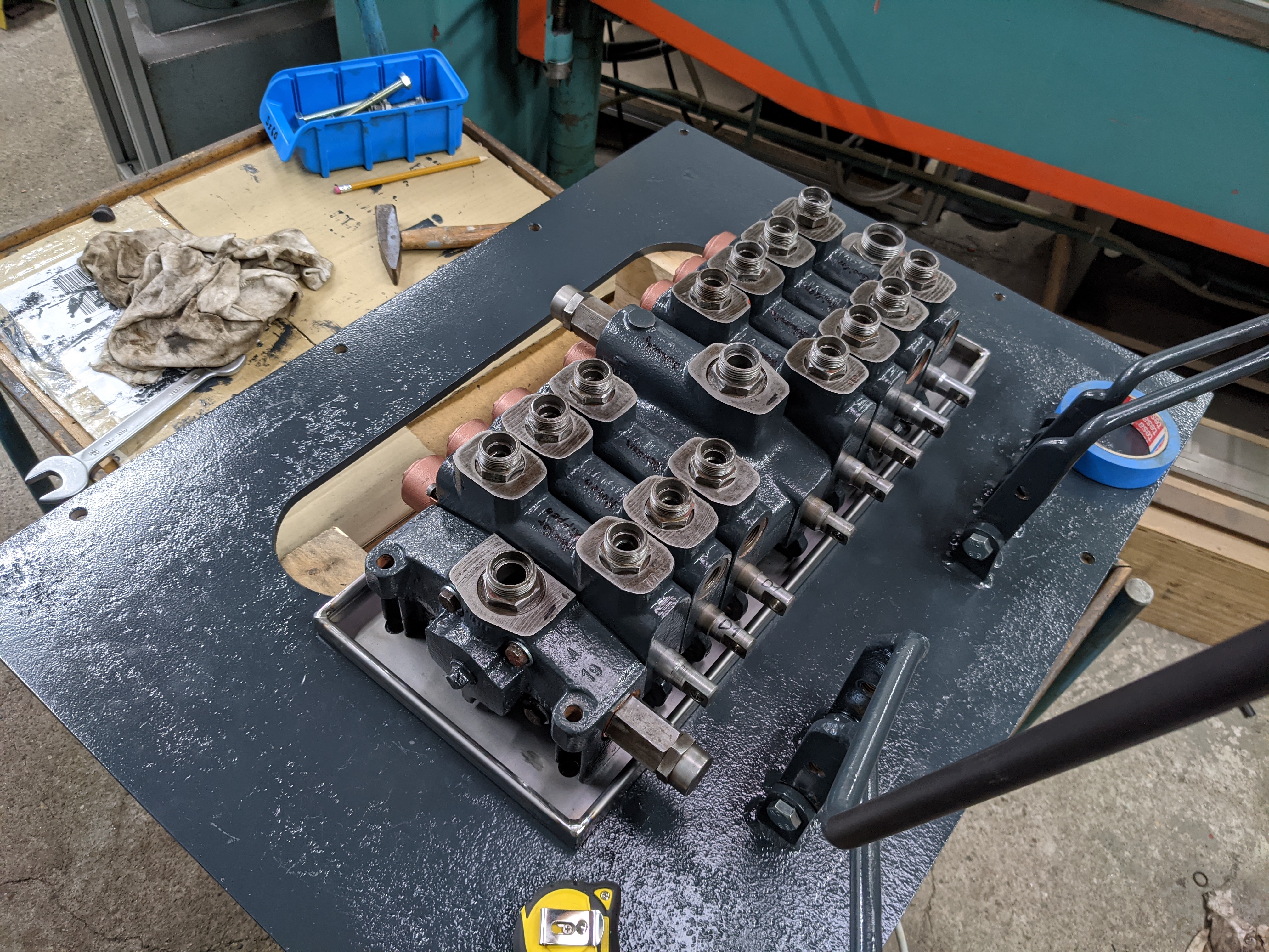 Was hier bei diesen Ventilblöcken auch fehlt, weil es damals wohl nicht üblich war, ist eine Leckleitung. Die kleckern ja fröhlich nach vorn heraus. Vielleicht sollte man vor dem Zusammenbau darüber nachdenken (ich werde es auf jeden fall tun), wie man austretendes Leck-Öl sauber auffangen und dann ggf. dem Kreislauf wieder zuführen (oder entsorgen) kann. Bei mir schwimmt das Zeugs mit dem ganzen Dreck in der Wanne unter dem Sitz herum... Mag ich gar nicht leiden...