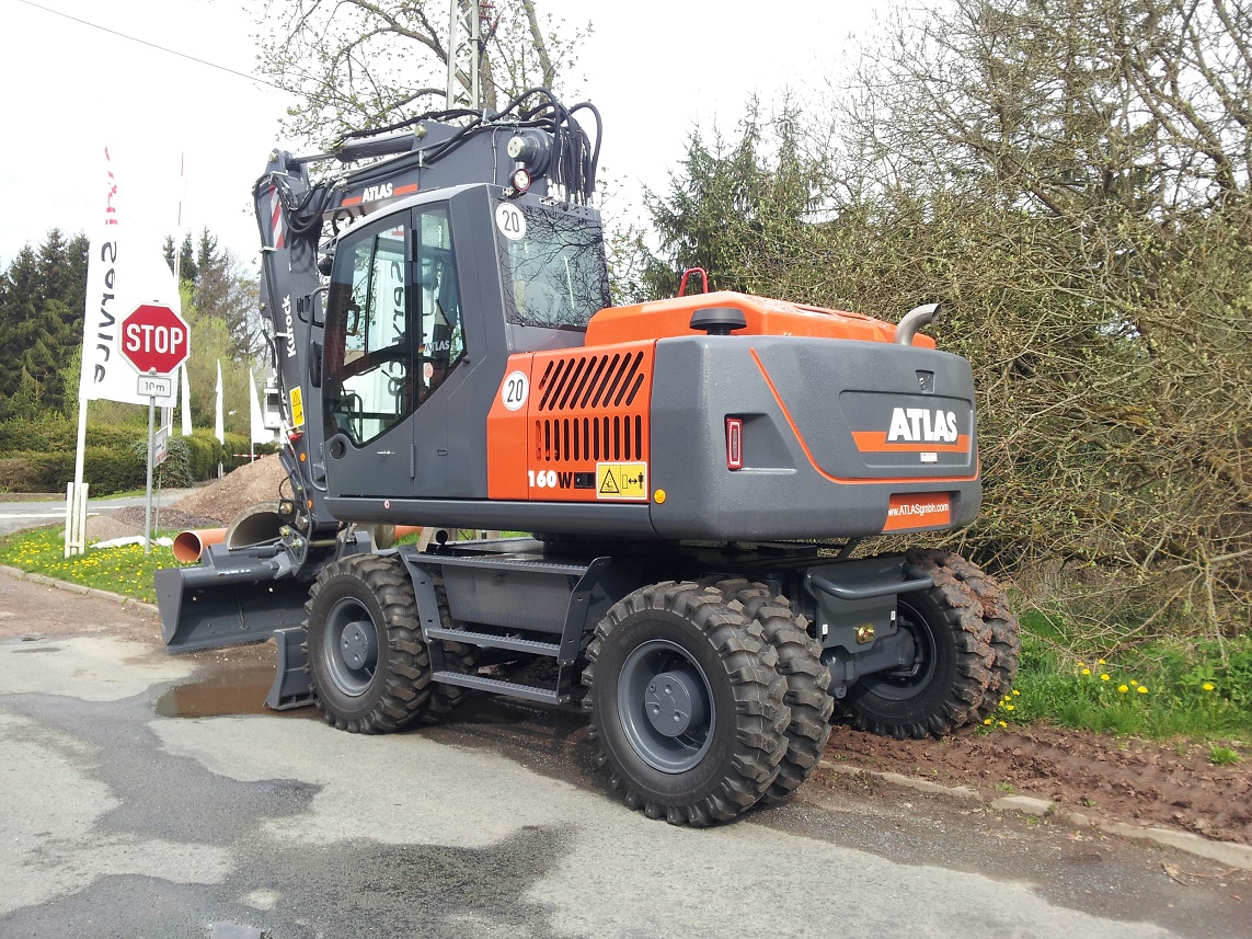 Und dann hab ich noch was auf arbeit gesehen dort hat eine firma eine brücke gemacht und sie haben einen nagelneuen atlas 160W abgeladen der hat sogar noch einen schonbezug auf dem sitz und keinen kratzter am planierschild.