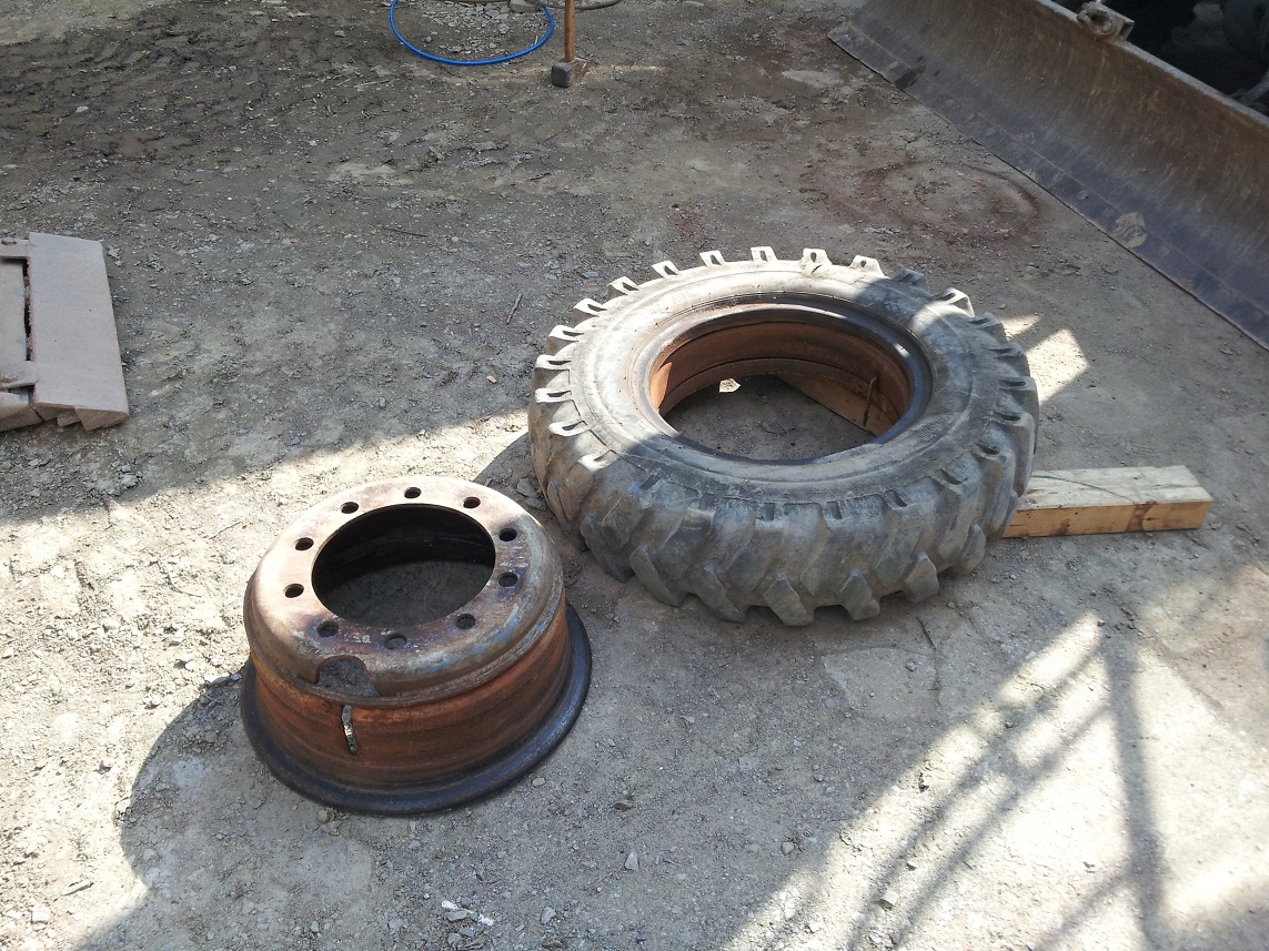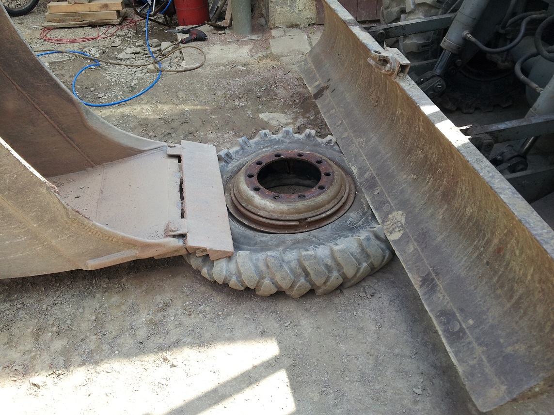 .Ein reifen ist mir noch kaputt gegangen hab gleich einen neuen bestellt und auch gleich gewechselt man gut das der bagger eigene montierwerkzeuge hat sonst hätte ich den reifen nie runter bekommen