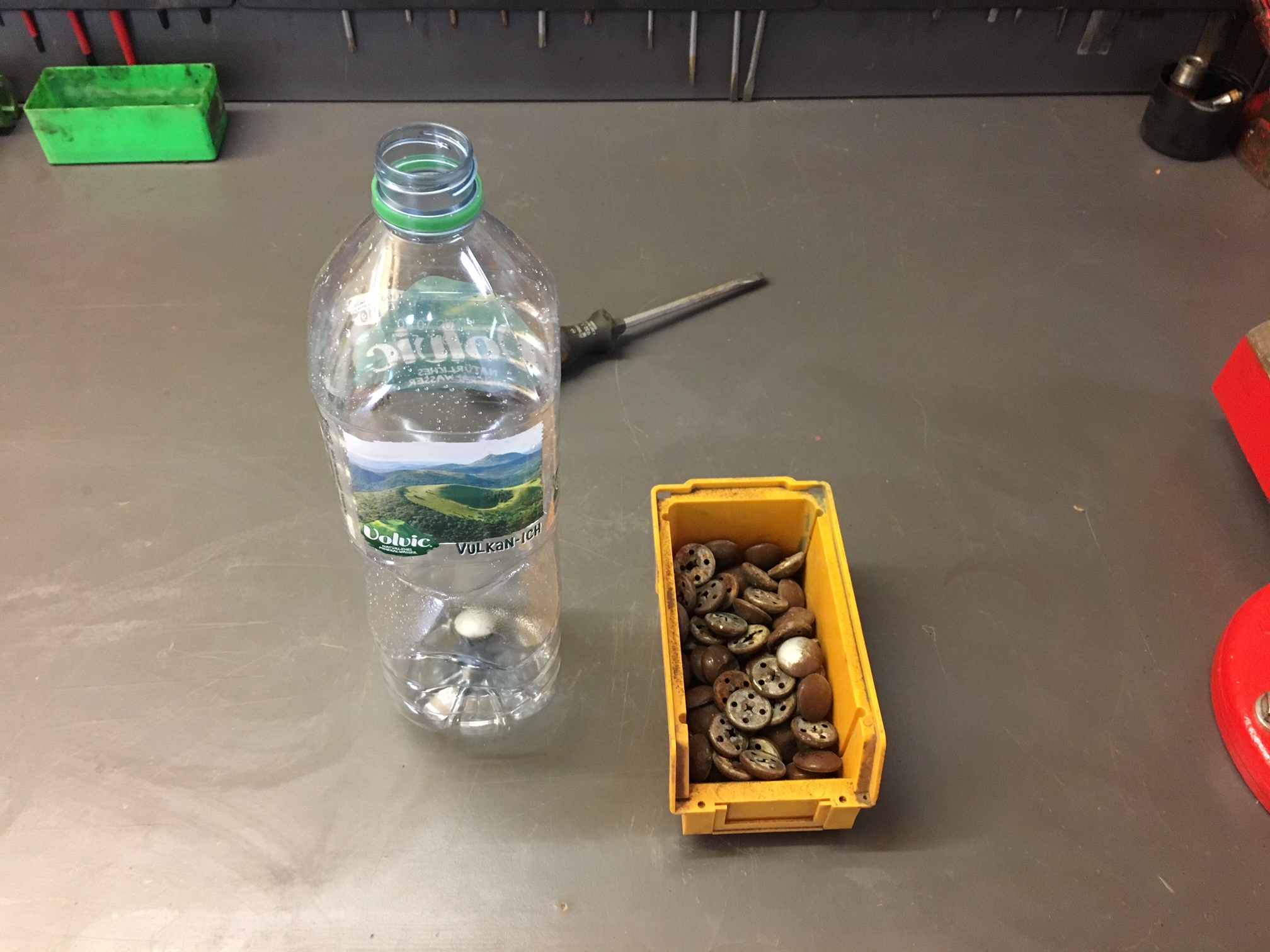 Anschleißend noch alle Knopfrückseiten mit einem Schraubendreher wieder grichtet.
