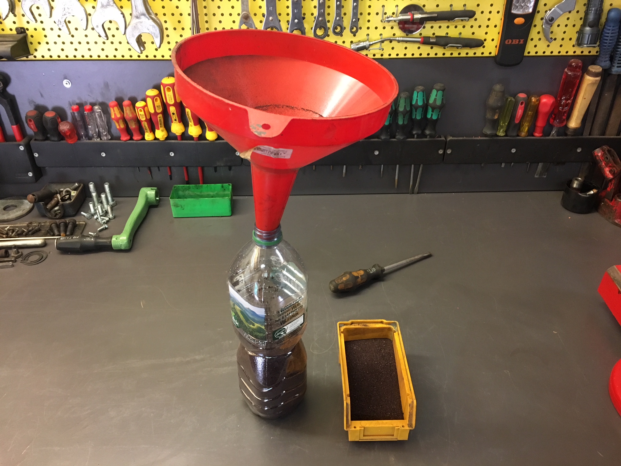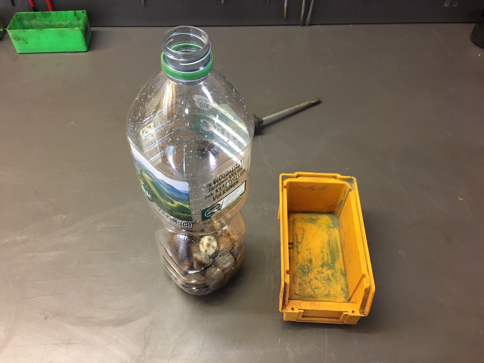 mit Strahlsand in eine PET-Flasche und ab damit in die Drehbank... aber leider kann meine Drehbank