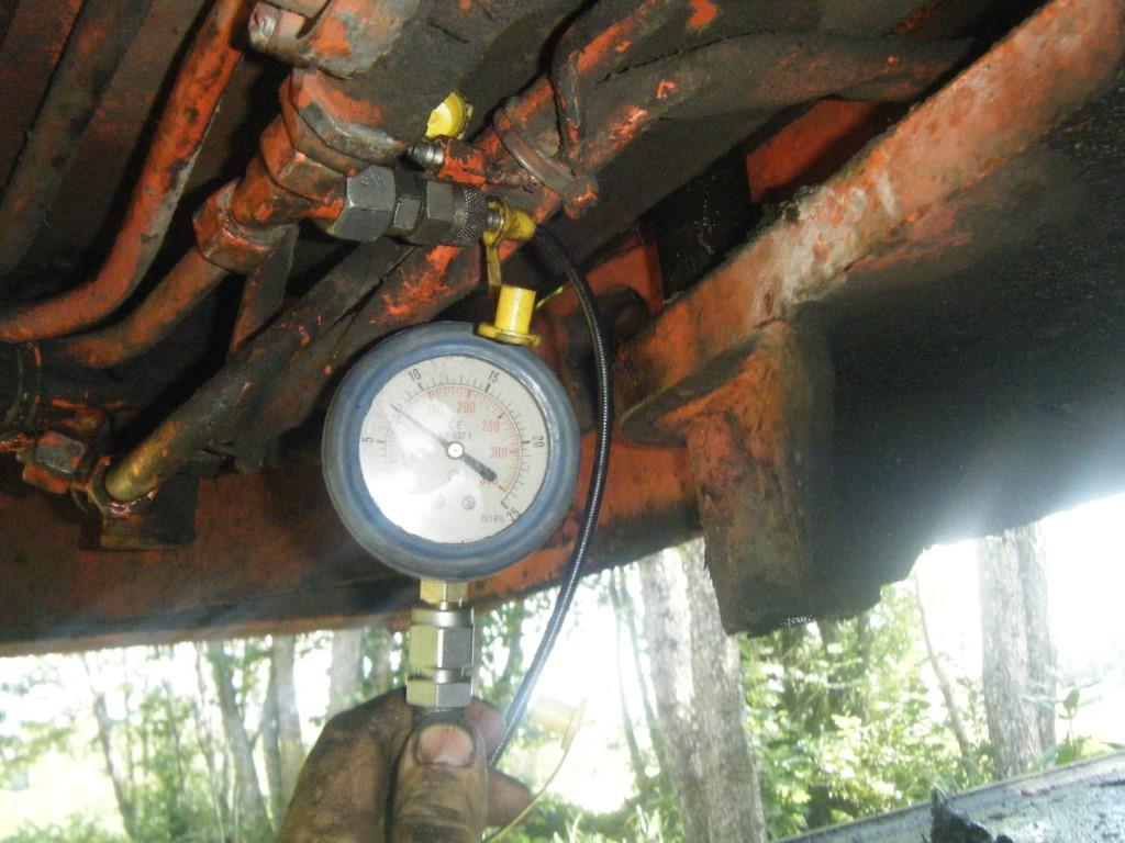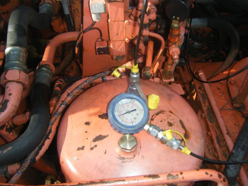 An adapter from pneumatic to hydraulic fittings allowed the pressure to be measured with the standard hydraulic equipment.