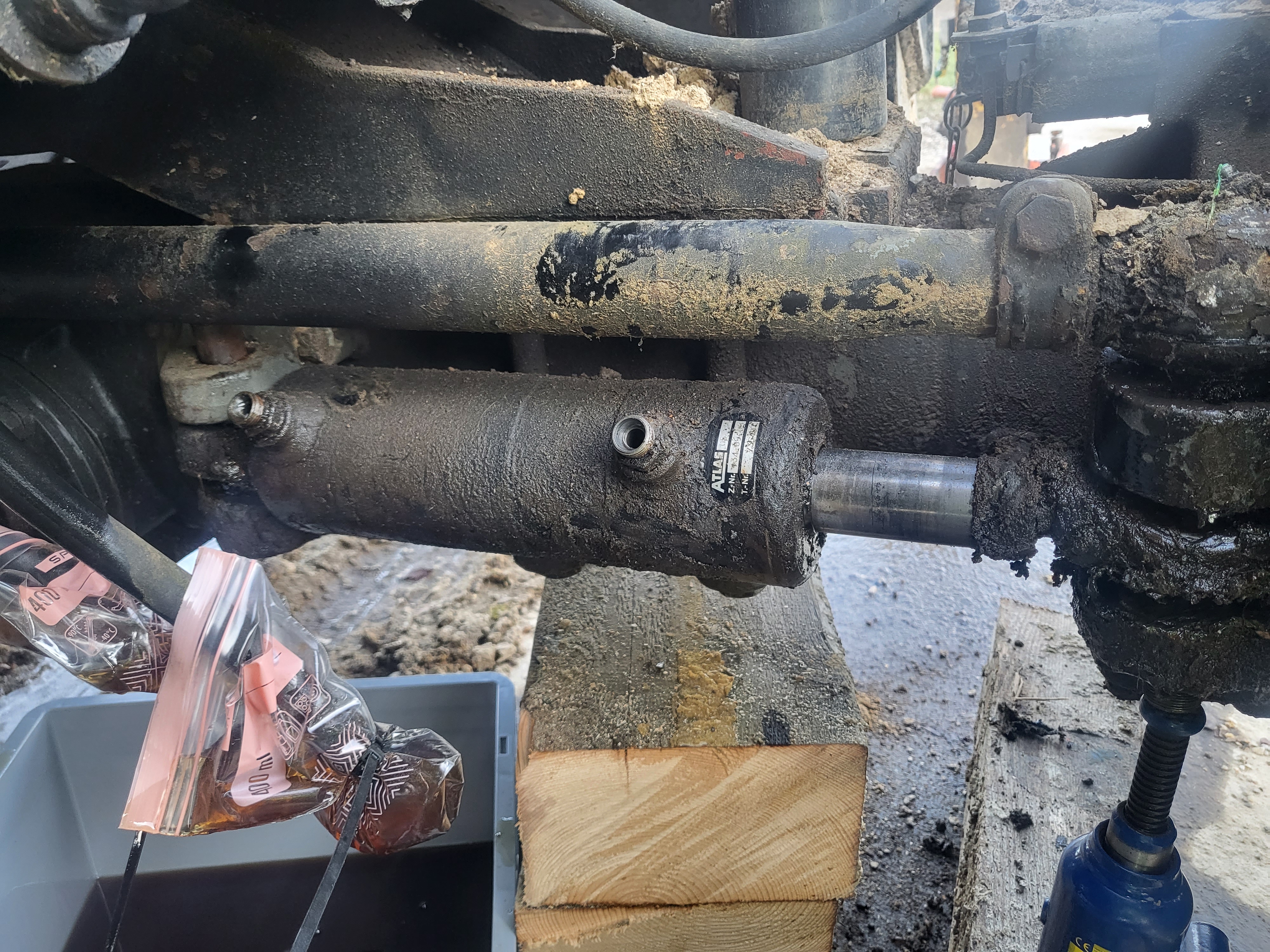 Zum Einbau habe ich einfach die Seite am Differenzial eingebaut und dann mit Druckluft den Zylinder ausgefahren bis das zweite Auge passte. Geht Natürlich auch über das Lenkrad, nur schraube ich für gewöhnlich alleine und wollte mir das klettern ersparen.