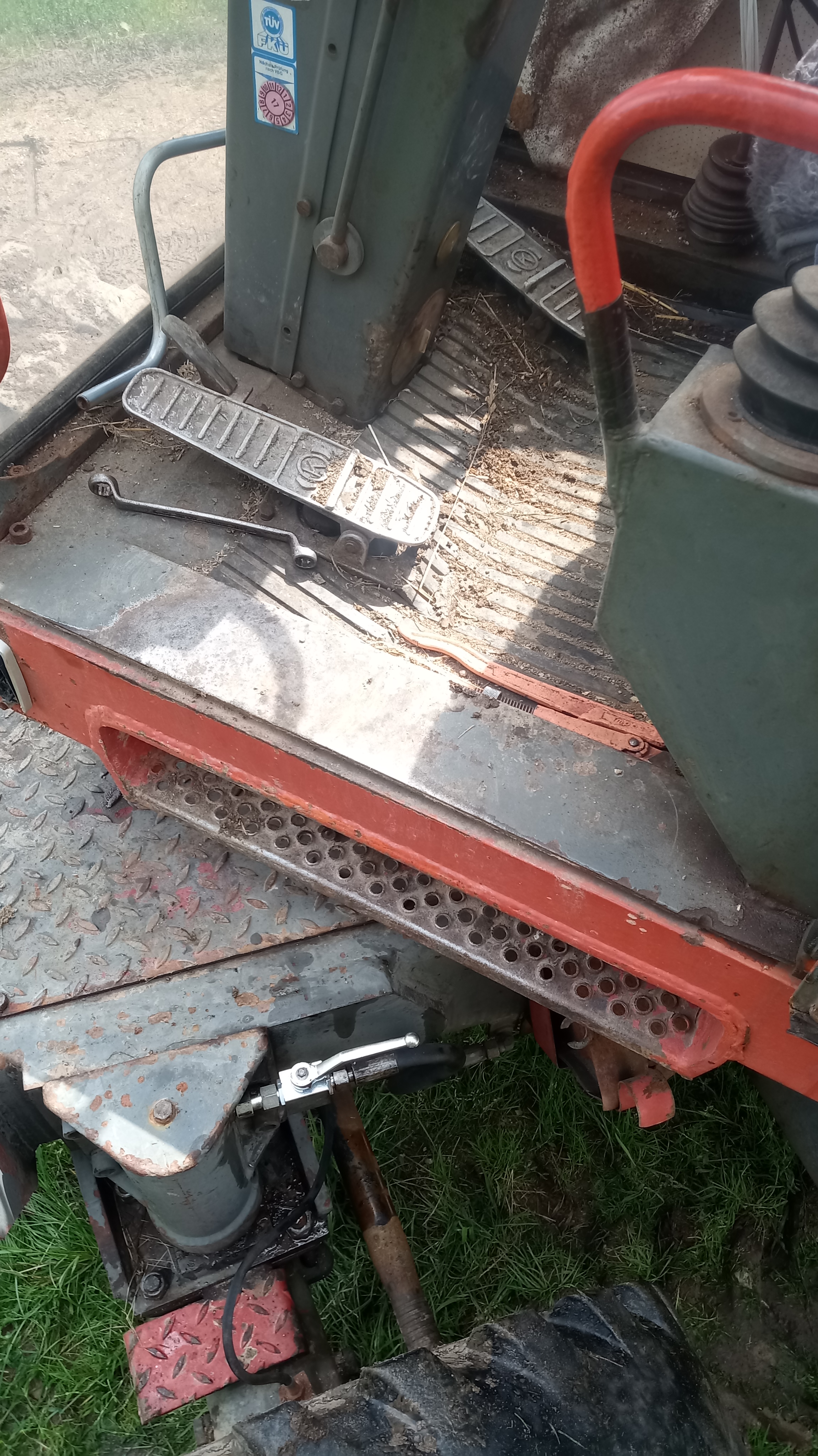 Gibt immer eine Schrecksekunde, wenn man mit dem schweren Schalengreifer und nicht angezogenen Fußbremse plötzlich zu kippen beginnt.