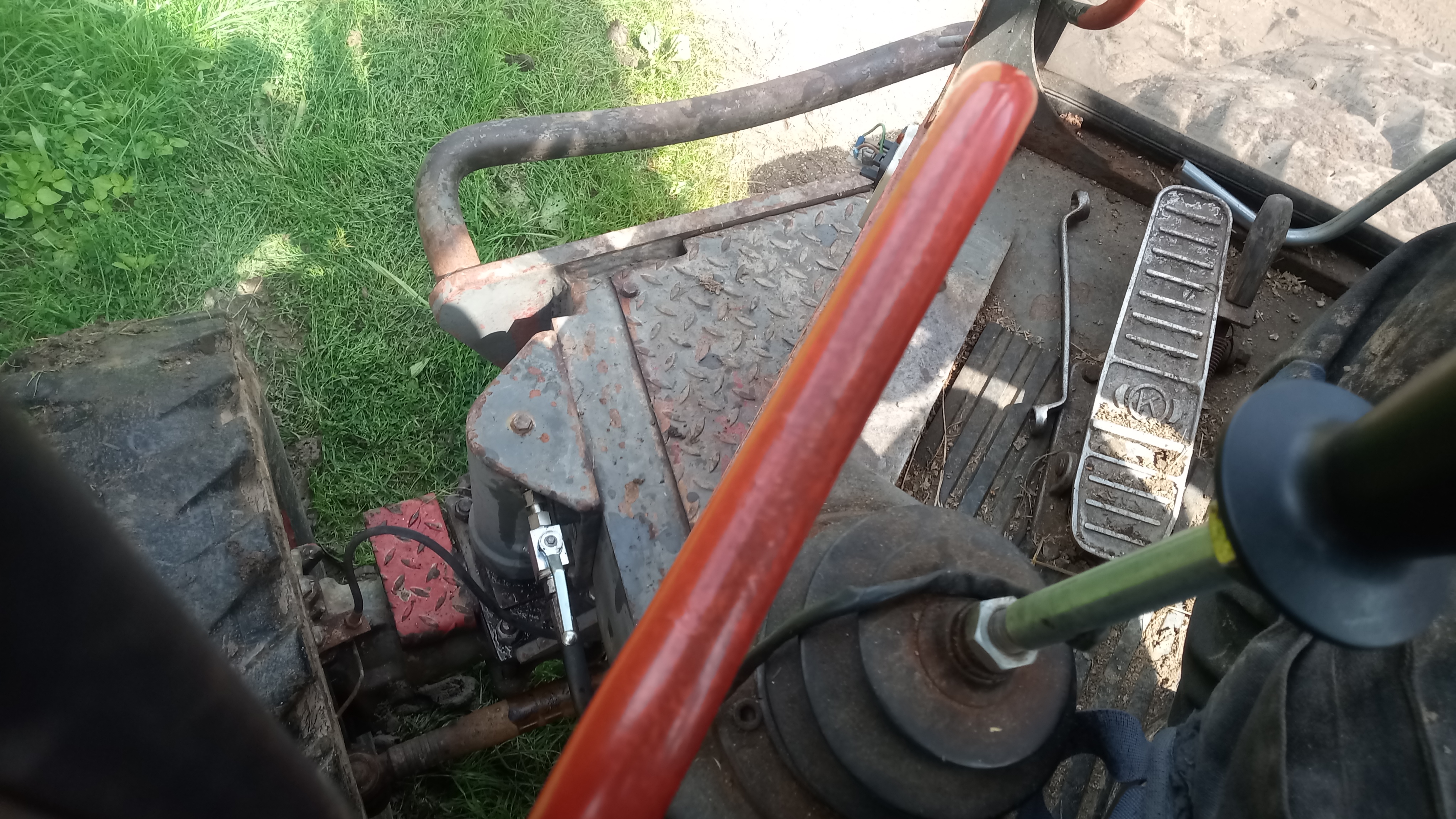 du kannst doch den für die Sperre zuständigen Druckluftzylinder vom Bremspedalkreis trennen und dann, über ein Ventil in der Kabine, seperat mit Druckluft beaufschlagen um die Achse zu sperren. Das wäre zumindest eine elegante Lösung, auch von der Bedienung her (kein Aussteigen nötig).