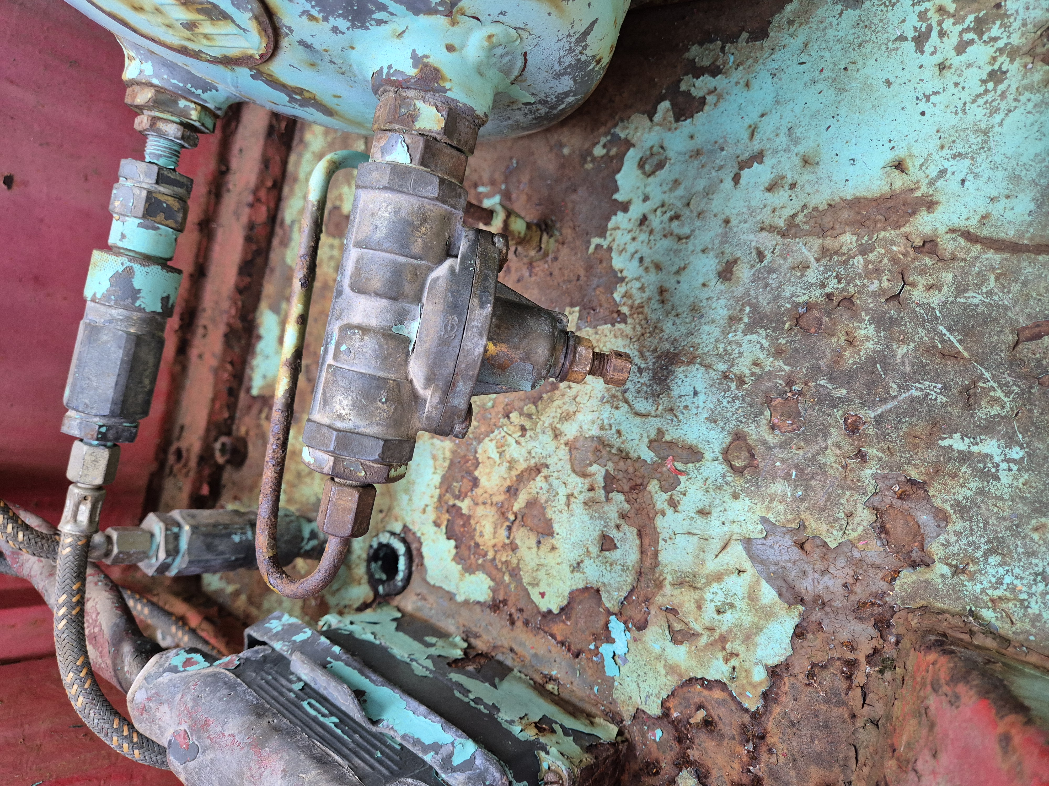 Erst war's der Keilriemen des Kompressors, dann undichte Verschraubungen nun der Druckregler in der Kabine, hier hat sich das Gewinde der Einstellschraube gefressen.