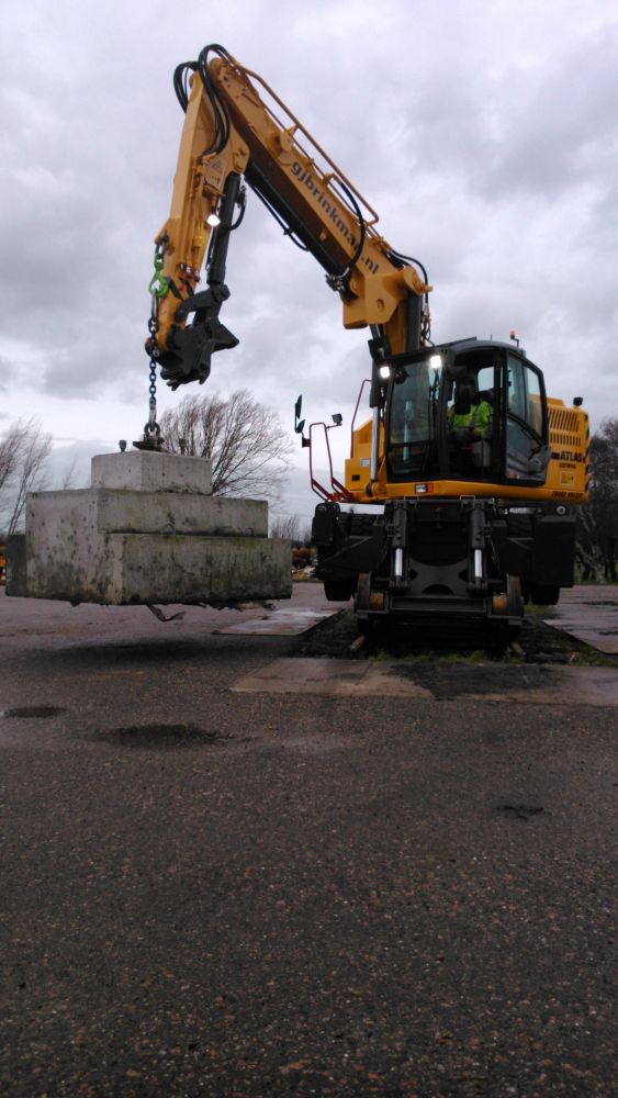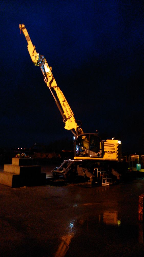 Bei 9 Meter hebt die Maschine noch 10 Tonnen