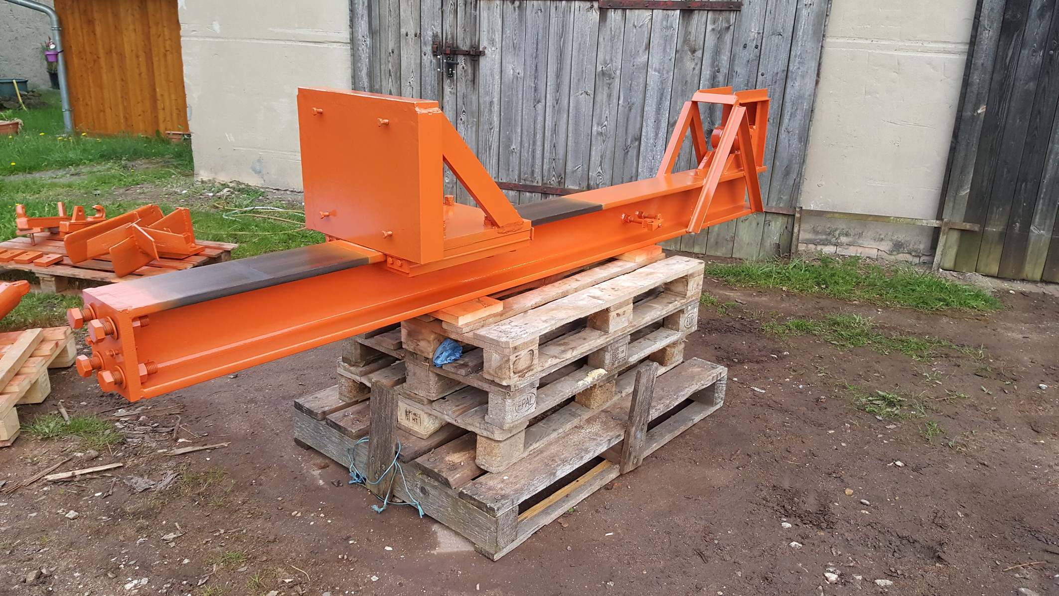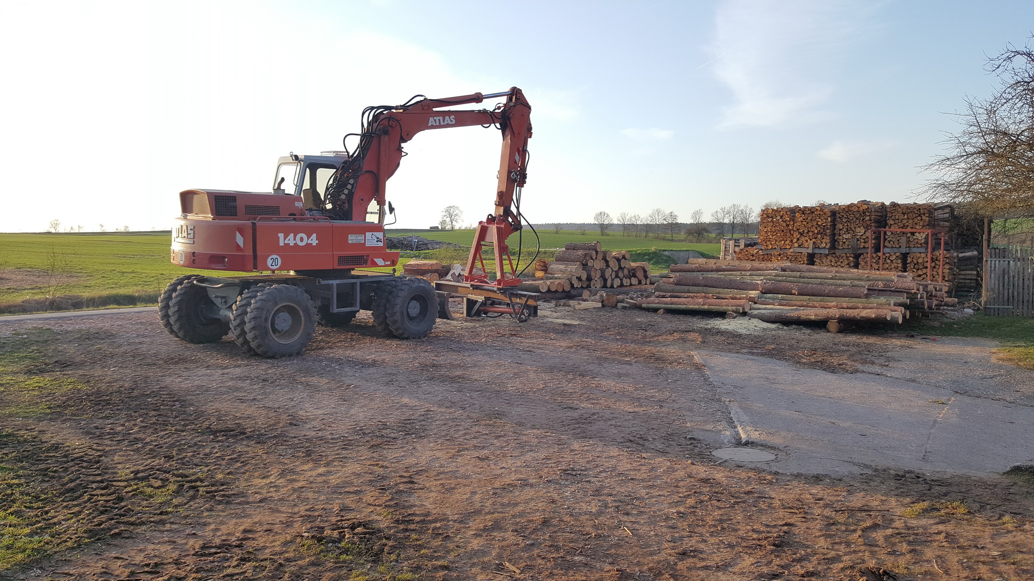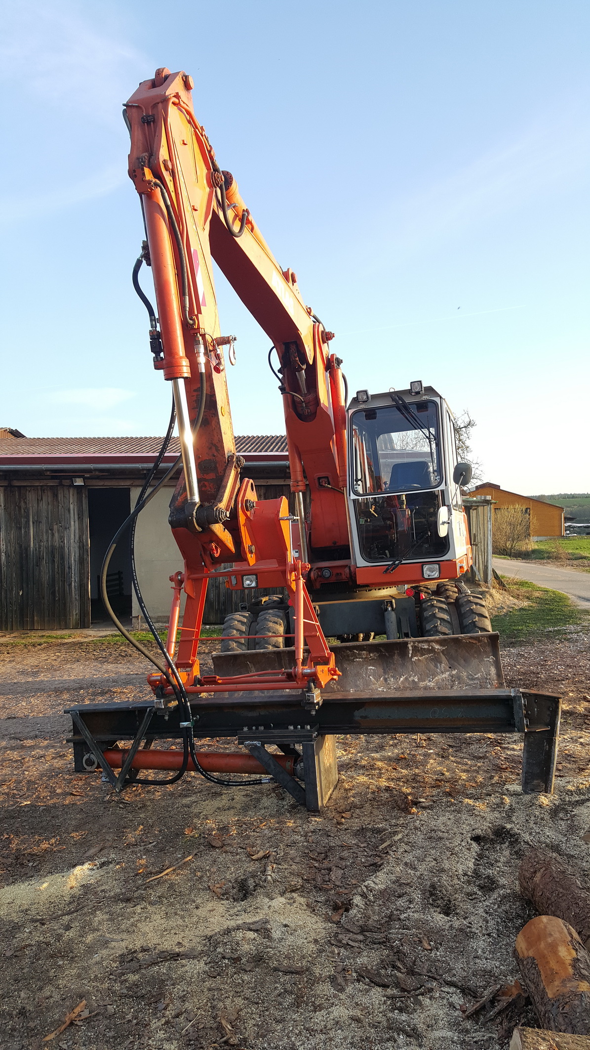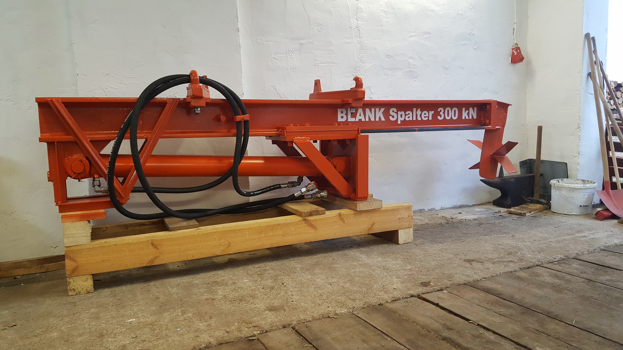 Um den Holzspalter evtl. auch einfach auf einen Liegenden umbauen zu können, habe ich die Euro-Koppelhaken nur angeschraubt. Nun noch die passenden Hydraulikschläuche montieren und los geht der erste große Test. Hier das Ergebnis: