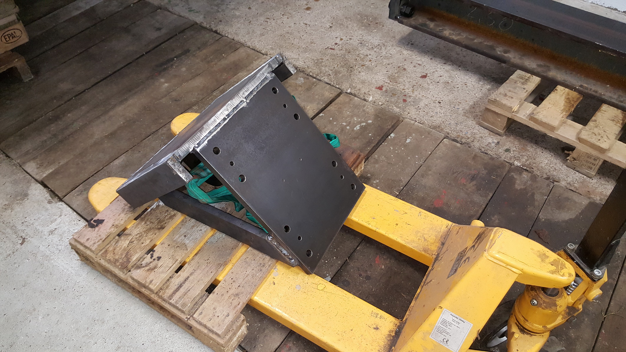 Nun kommt schon das Schweißen. Bei einer Materialstärke von 25 mm ist zwar mit wenig Verzug zu rechnen, trotzdem sollte aber mit Bedacht gearbeitet werden, um unnötige Spannungen im Werkstück zu vermeiden.