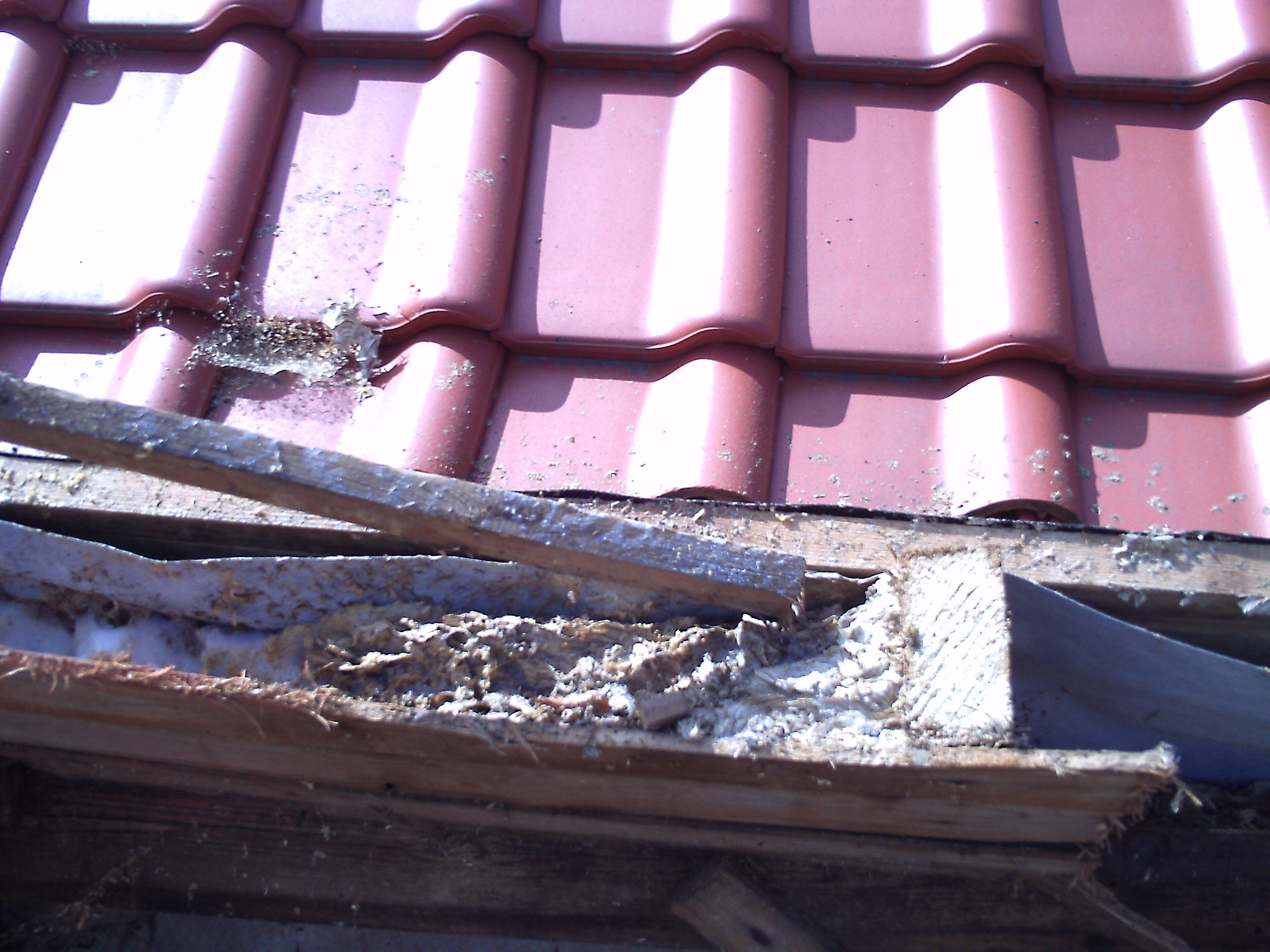ein wesepennest das wir gestern beim pfannenabnehmen bereits bemerkt hatten.. meine mitarbeiterin und auch ich haben gestern schon jeweils einen stich abbekommen.. hab gestern abend noch ne wespenfalle gestellt und mein nachbar kam heute mit schaum - es wird da langsam ruhiger in der ecke.. wenn se keine miete zahlen müssen se raus - ist halt so..