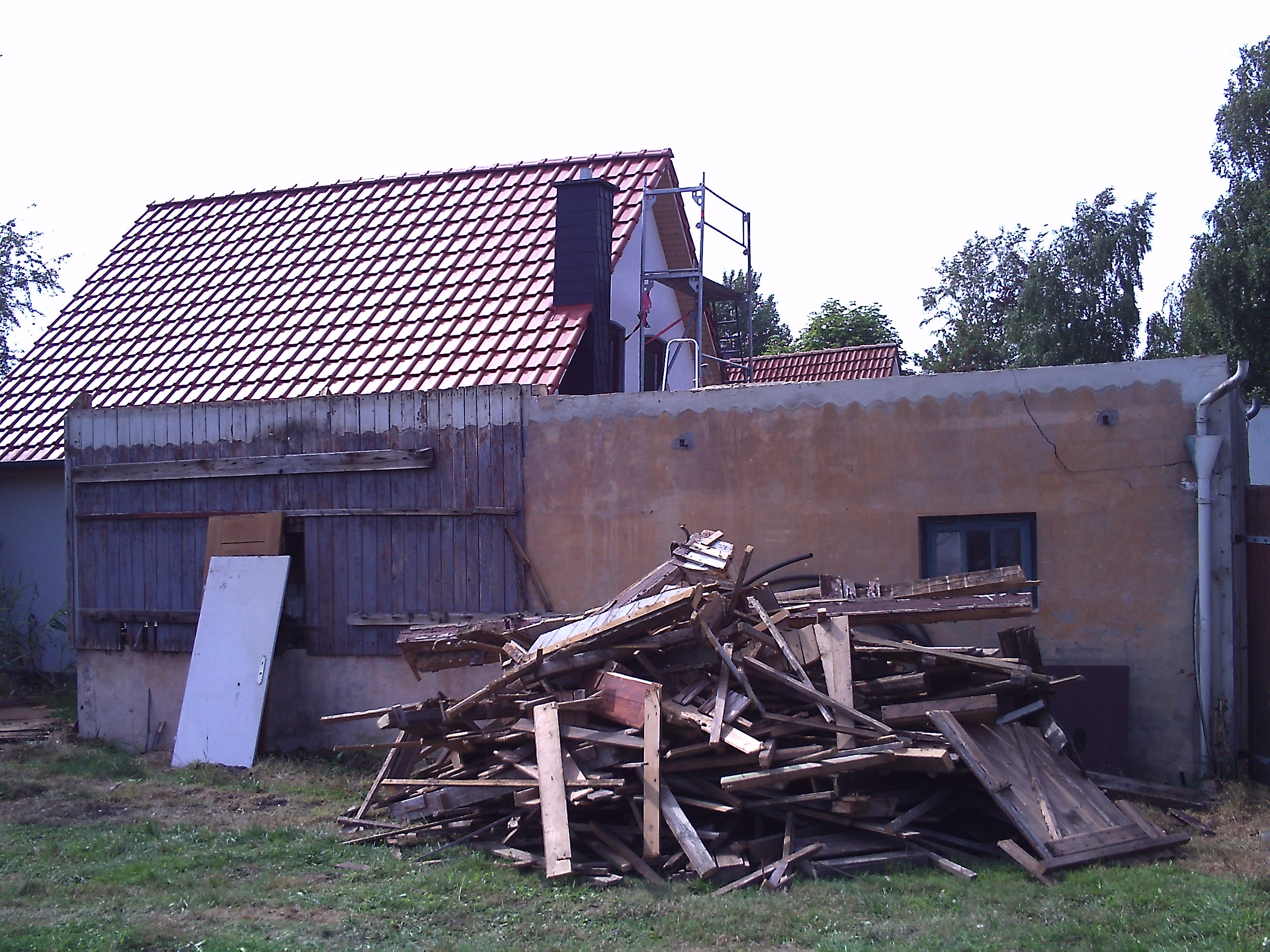 jetzt hoffe ich das wir am we endlich mit dem holz entfernen fertig werden... der bagger warte schon drauf die mauern einzureissen
